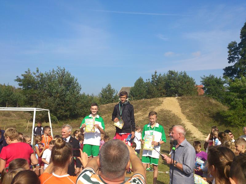 Nie mogło zabraknąć naszej reprezentacji, w której skład wchodzili uczniowie szkoły podstawowej i gimnazjum: Joanna Bińkiewicz, Sylwia Grzegorczyk, Dariusz Pietrusiński, Dominik Piotrowski, Bartłomiej Czerwiński, Julia Radecka, Rafał Marciniak, Anna Konarzewska, Aleksandra Kosińska oraz Bartosz Stępień, pod opieką p. Igora Hupało. Zawody te okazały się znakomitym rozpoczęciem nowego roku szkolnego. Powodem do dumy były zdobyte przez nas medale: złoty - wywalczony przez Rafała Marciniaka w kategorii chłopców klas I gimnazjalnych, dwa srebrne dla Joanny Bińkiewicz i Dariusza Pietrusińskiego z klasy III gimnazjum, oraz dwa brązowe dla Julii Radeckiej- klasa I gimnazjum i Dominika Piotrowskiego- klasa II gimnazjum. Trasa, z którą zmagali się uczestnicy biegu liczyła łącznie 800m. Nie była jednak prosta -zawodnicy musieli pokonać górkę, której nie darzą sympatią, gdyż pokonanie jej wymaga wiele wytrwałości. Mimo tego, nasza reprezentacja bardzo dobrze sobie poradziła. Po męczącym biegu wysiłek uczestników docenili organizatorzy- każdy mógł liczyć na ciepły posiłek i wspaniałe nagrody.