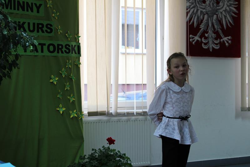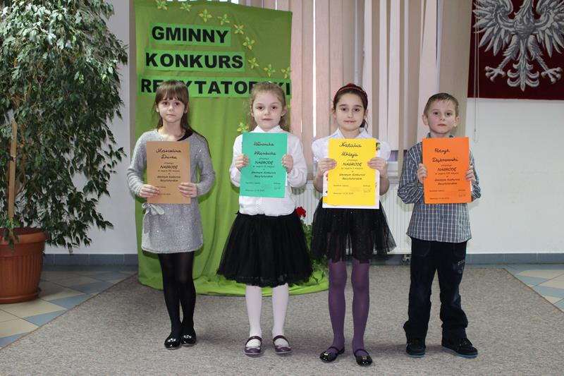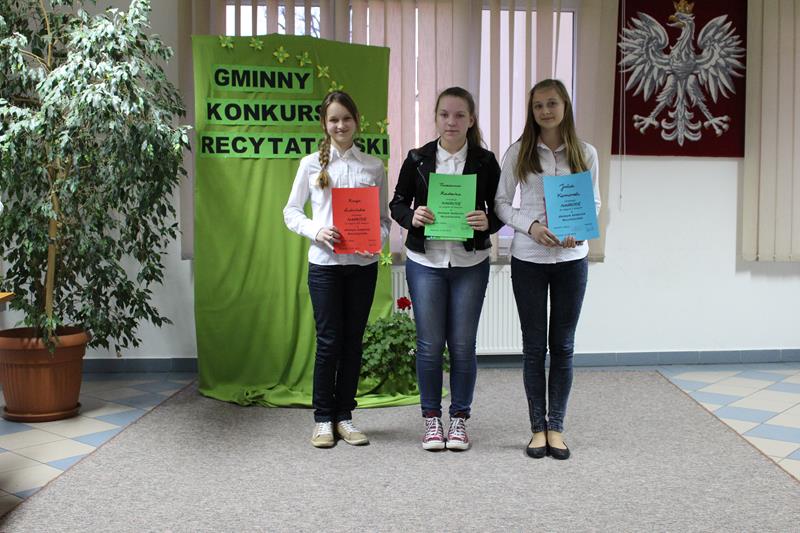 Dnia 12.03.2015 r. w naszej szkole odbył się Gminny Konkurs Recytatorski. W tym roku wzięło w nim udział 33 młodych wykonawców z Zespołu Szkół Publicznych w Goszczynie i Publicznej Szkoły podstawowej w Bądkowie. W niecodziennych, szkolnych zmaganiach uczniom dopingowali Dyrektorzy szkół Pani Agnieszka Socha i Pan Mariusz Wangryn oraz członkowie rodzin młodych recytatorów. Nad prawidłowym przebiegiem konkursu czuwało jury w składzie: Pani Anna Fatek, Pani Katarzyna Kowalczyk, Pani Marta Gałkowaka oraz Pani Marta Osińska. Jury wyłoniło zwycięzców w czterech kategoriach wiekowych. Całą imprezę uświetniła obecność zgromadzonej na sali widowni. Rodzice, ciocie, koledzy i koleżanki mieli tego dnia niepowtarzalną okazję posłuchać interpretacji utworów poetyckich w wykonaniu uczniów. Występy bardzo się podobały, co potwierdzały częste i gromkie brawa słuchaczy.