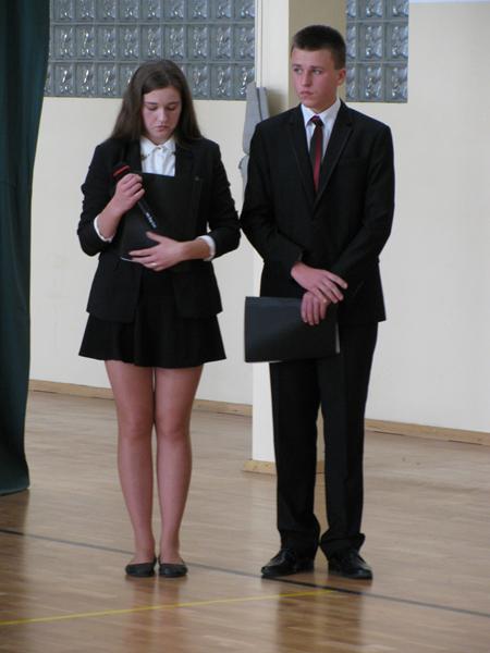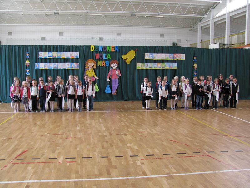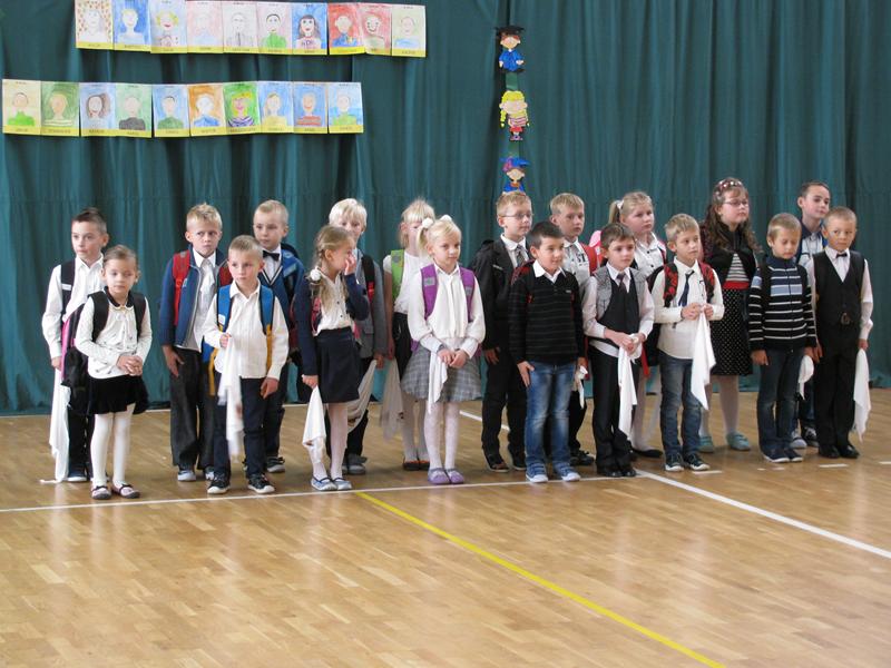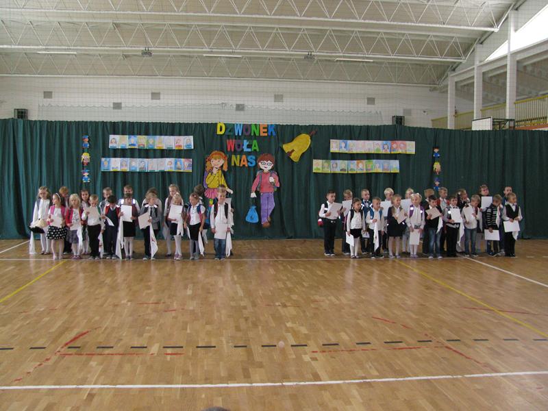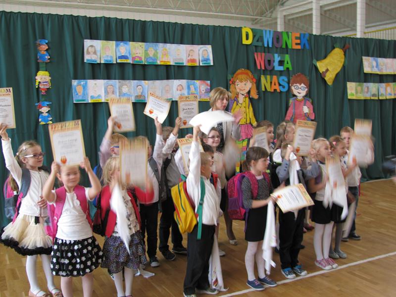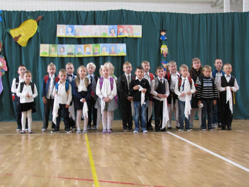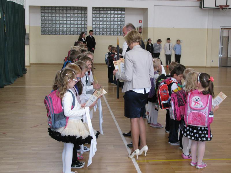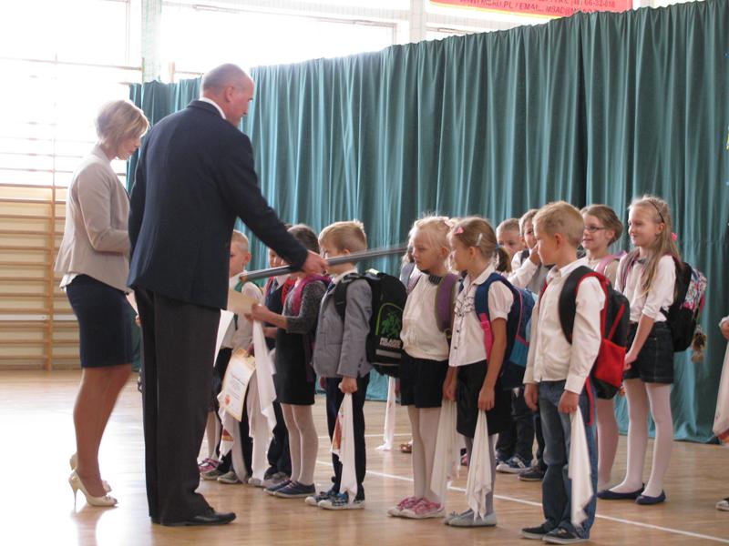 Zanim to jednak nastąpiło nasi dzielni pierwszoklasiści pokazali to, czego zdążyli się już nauczyć pod opieką swoich wychowawczyń – Sylwii Mieńkowskiej (klasa I a) oraz Anny Fatek ( klasa I b). W krótkim wystąpieniu artystycznym z wypiekami na policzkach, uśmiechem na ustach recytowali wiersze i śpiewali piosenki. Po ślubowaniu i pasowaniu ogromnym ołówkiem przez dyrektora szkoły, uczniom zostały wręczone pamiątkowe dyplomy.