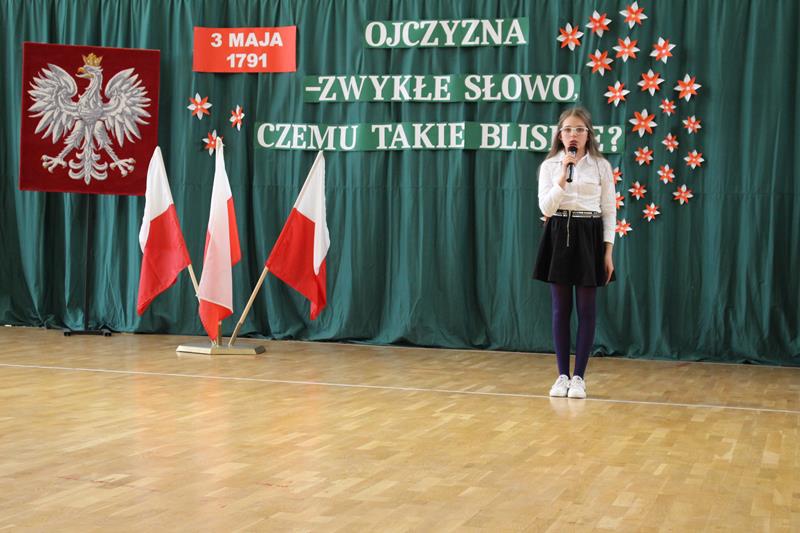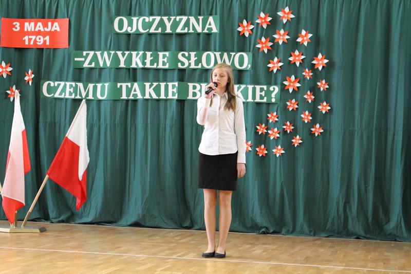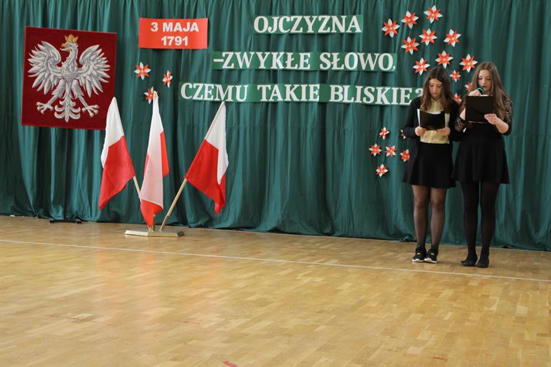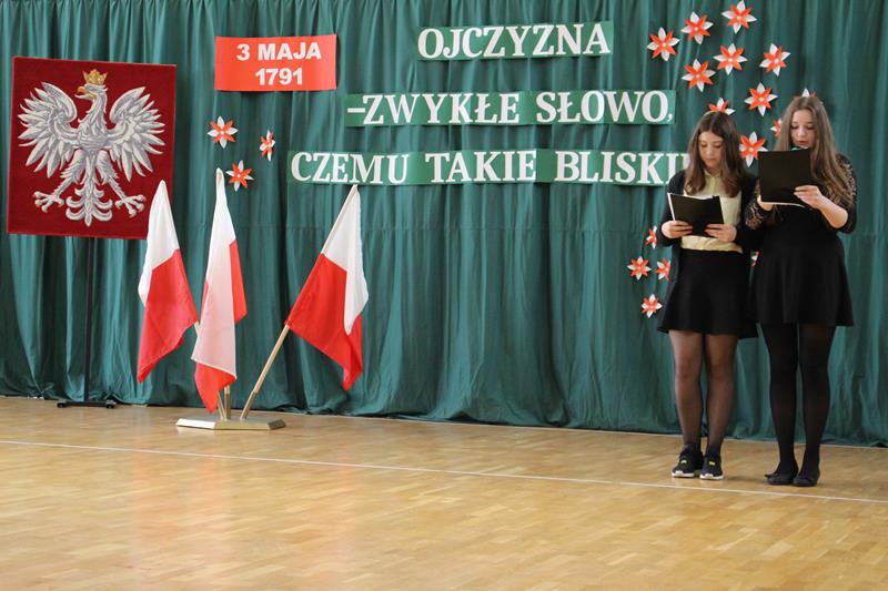 Nad właściwym przebiegiem uroczystości czuwali pedagodzy ZSP: pani Dagmara Świderska, pani Monika Stani oraz pani Marta Osińska - osoby odpowiedzialne za przygotowanie młodzieży do występu, oprawę muzyczną oraz dekoracje. Program słowno-muzyczny stał się krótką lekcją historii, przypomnieniem najważniejszych wydarzeń, ukłonem w stronę przodków, którzy dokonali dzieła uchwalenia Konstytucji. Młodzi recytatorzy stanęli na wysokości zadania, wiersze deklamowali z należytą powagą, w skupieniu. W tym niezwykłym dniu na sali panowała cisza i podniosła atmosfera. Uroczystość przypomniała wszystkim o jednym z ważniejszych wydarzeń w dziejach narodu polskiego.