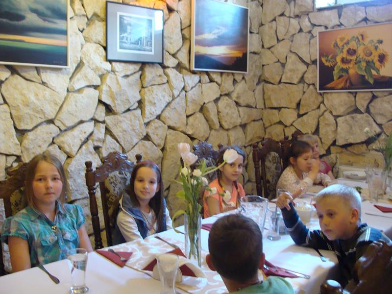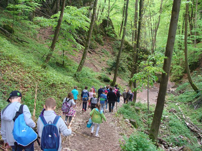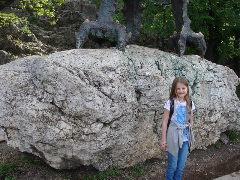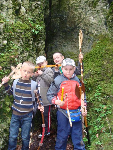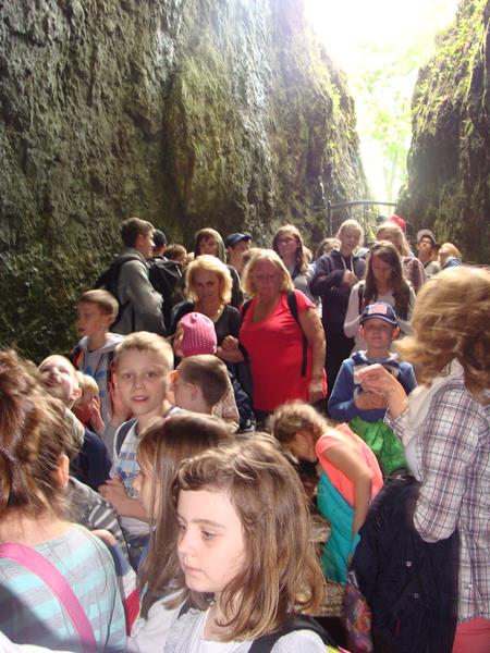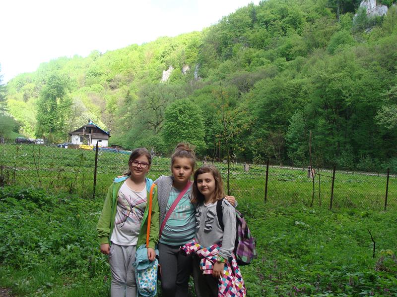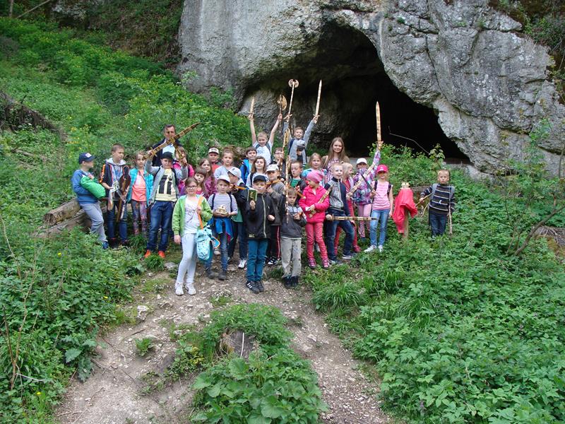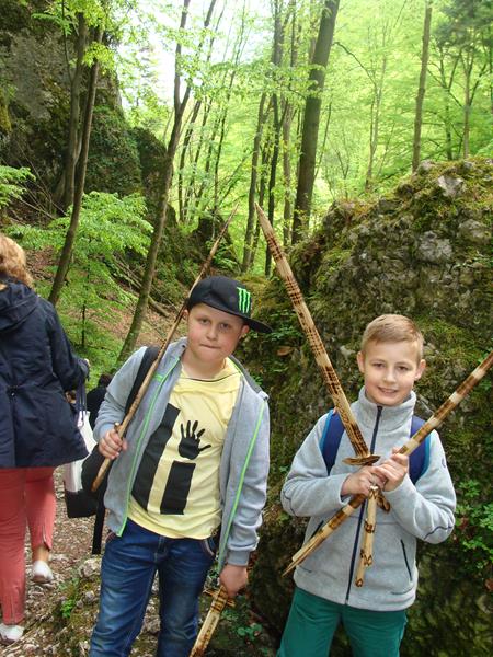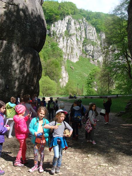 Pierwszym etapem wycieczki był Ojców. Wędrowaliśmy szlakami Ojcowskiego Parku Narodowego, wzdłuż malowniczej doliny Prądnika. Oglądaliśmy piękne skały o rozmaitych kształtach i rozmiarach. Celem wędrówki była Jaskinia Łokietka. Zrobiła ona na nas ogromne wrażenie. Podziwialiśmy w niej wspaniałe stalagmity i stalaktyty oraz słuchaliśmy z ogromnym zainteresowaniem pani przewodnik opowiadającej o jej dawnych mieszkańcach. Powrót do autokaru inną drogą również obfitował w piękne widoki.