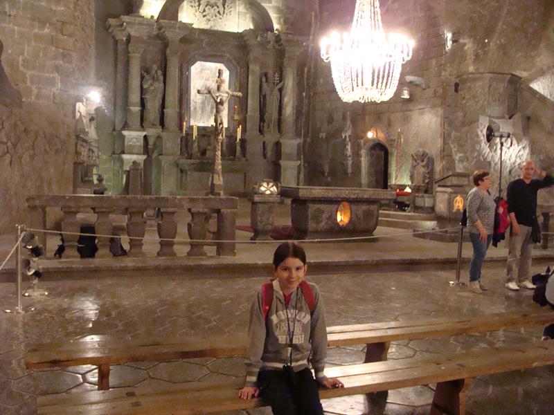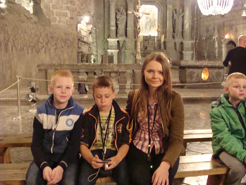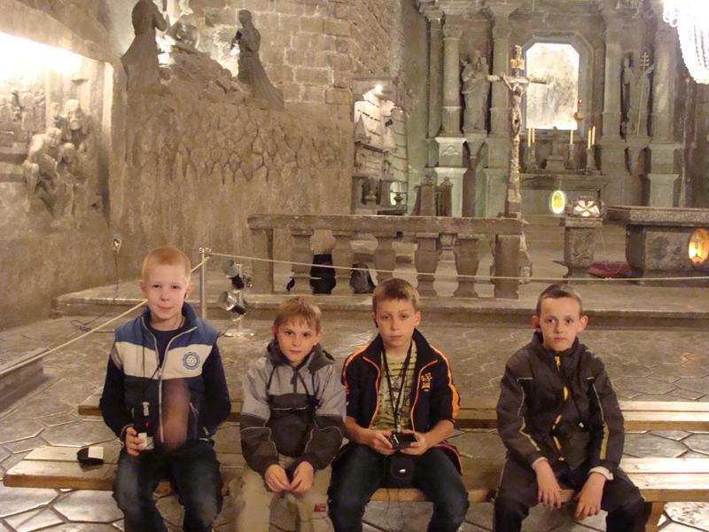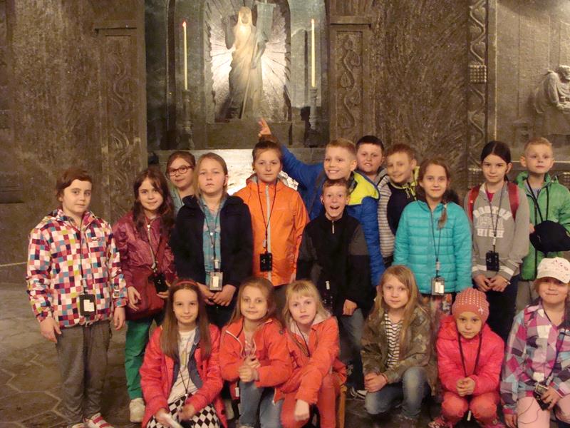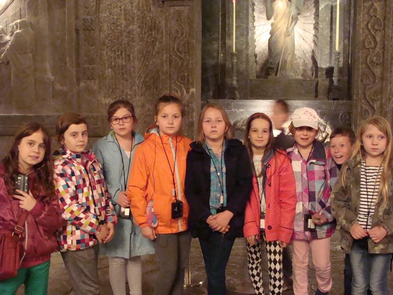 Po długim spacerze na świeżym powietrzu udaliśmy się autokarem do naszego hotelu ''Galicja'' w Wieliczce. Po zjedzeniu obiadu i odpoczynku w hotelowych pokojach czekała na nas kolejna atrakcja - zwiedzanie Kopalni Soli w Wieliczce. Magiczna podróż poprzez labirynt skalnych korytarzy to bardzo dobra okazja, żeby poznać unikalne pejzaże niezwykłych komór oraz odkryć tradycję i historię kopalni. Podczas wycieczki trasą turystyczną z panią przewodnik podziwialiśmy wspaniałe kaplice, urokliwe podziemne jeziorka, oryginalne urządzenia oraz ślady prac górniczych. Kilkugodzinny spacer korytarzami kopalni to nie tylko zwiedzanie, ale też wspaniały zabieg inhalacyjny. Zwiedzanie kopalni zakończyliśmy zakupem pamiątek. Po dniu pełnym wrażeń udaliśmy się do hotelu na odpoczynek.