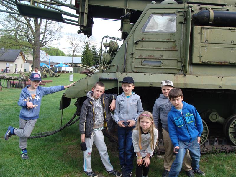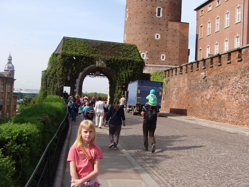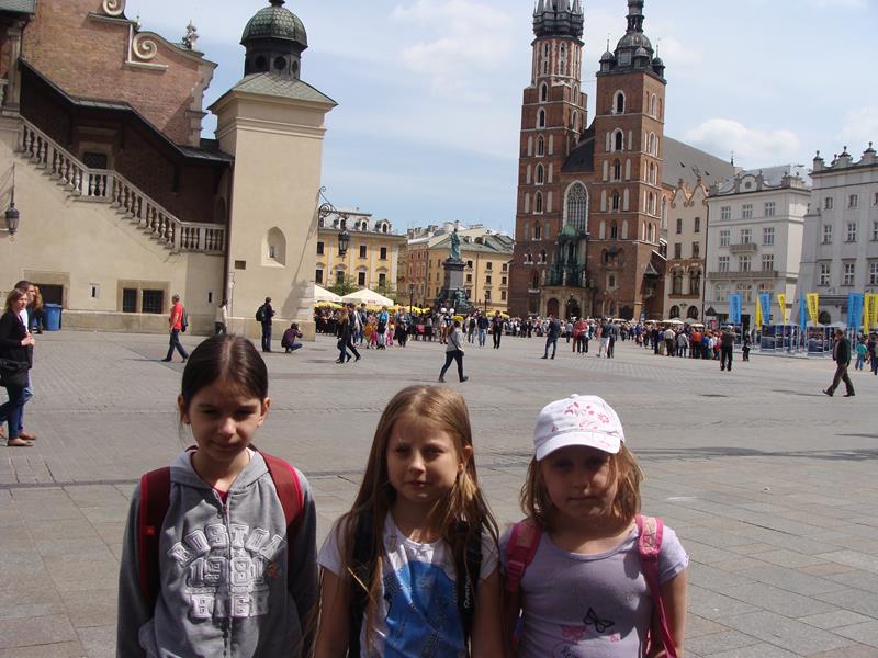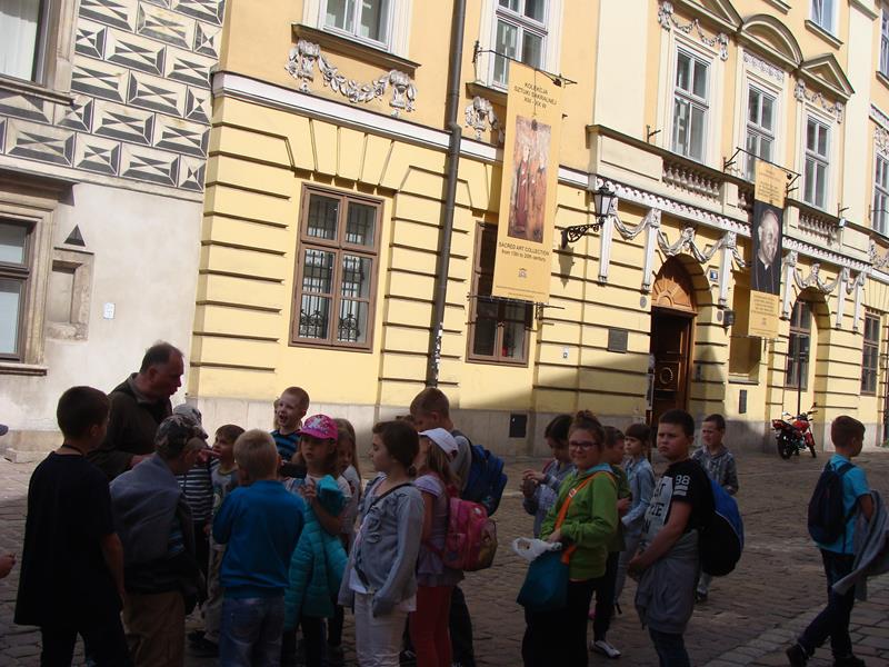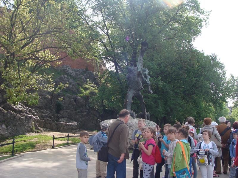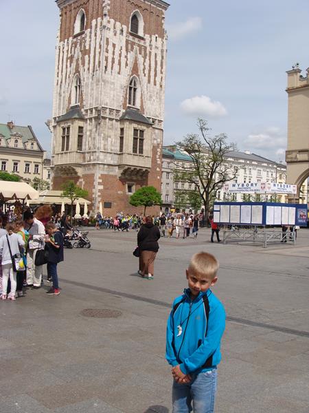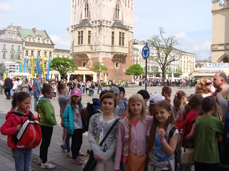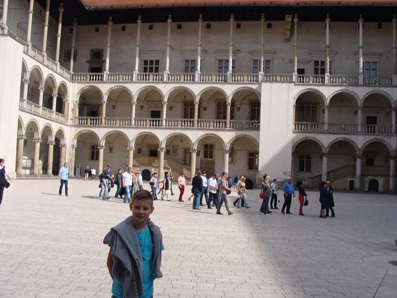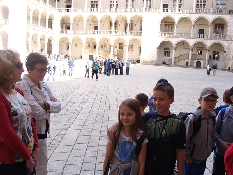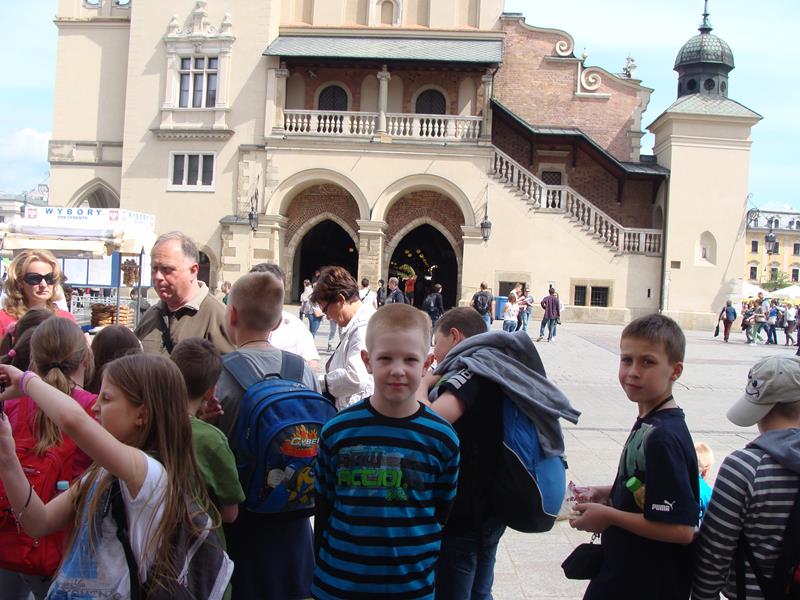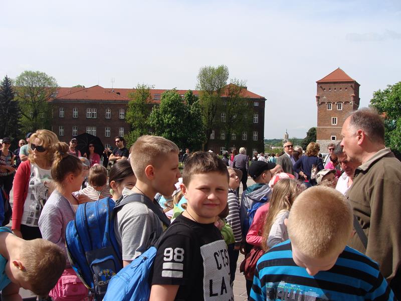 Drugi dzień wycieczki rozpoczęliśmy od zwiedzania Krakowa. Pan przewodnik opowiadał o historii i zabytkach dawnej stolicy Polski. Zwiedzanie Krakowa rozpoczęliśmy od obejrzenia ziejącego ogniem Smoka Wawelskiego. Podziwialiśmy Katedrę na Wawelu, oglądaliśmy położone w jej podziemiach groby władców i wielkich Polaków. Również piękny i bogaty w zabytki był Rynek Starego Miasta, gdzie widzieliśmy Sukiennice, Bazylikę Mariacką z niezwykłym ołtarzem Wita Stwosza. Spacerując doszliśmy do Pałacu Biskupiego z oknem papieskim. Po zakupie kolejnych pamiątek pojechaliśmy do ostatniego punktu naszej wycieczki - Muzeum Orła Białego. W muzeum posiadającym największą w kraju kolekcję ciężkiego sprzętu bojowego oglądaliśmy działa artyleryjskie, armaty przeciwpancerne i przeciwlotnicze, wyrzutnie rakietowe, czołgi, wozy pancerne i samoloty wojskowe różnego przeznaczenia. Poza plenerową ekspozycją zwiedzaliśmy również sale muzealne z dokumentami i materiałami dotyczącymi działalności partyzanckiej na Kielecczyźnie, Polskiego Państwa Podziemnego i walki o wolność.