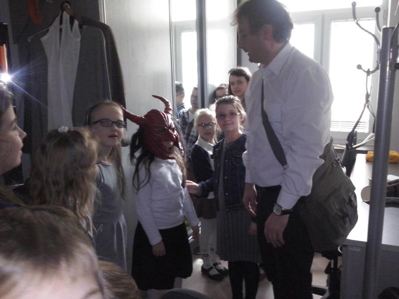 Powieść Astrid Lindgren to jedna z najbardziej ukochanych książek dzieciństwa wielu pokoleń. Dlatego dzieci z tak ogromnym zainteresowaniem obejrzały jej sceniczną wersję. Sztuka została urozmaicona aranżacjami muzycznymi oraz tańcem i w wierny sposób odtworzyła treści zawarte w książce. Po spektaklu, dzieci wraz z aktorami: panią Dorotą  Gorjainow i panem Zbigniewem Kozłowskim udały się w magiczną wędrówkę po teatrze. Zwiedziły foyer, widownię, scenę, garderobę, pracownię krawiecką, charakteryzatornię oraz magazyn kostiumów.  Na scenie miały okazję zabawy z rekwizytami teatralnymi oraz wykonywały proste zadania sceniczne. Na zapleczu teatru spotkały jego pracowników i uzyskały odpowiedź na pytanie: kto pracuje w teatrze. Po zwiedzeniu teatru przyszedł czas na warsztaty małego aktora, które fenomenalnie poprowadził pan Zbyszek Kozłowski. Dzieci dowiedziały się czym jest dykcja i emisja głosu. Zaprezentowane zostały im zabawne ćwiczenia emisyjno- dykcyjne. Dzieci uczyły się odpowiedniego poruszania po scenie w różnych sytuacjach. Wykonywały również proste rozgrzewki ruchowe, które przygotowują aktora do skutecznej pracy na scenie. Warsztaty były prowadzone w ciekawy sposób i bardzo podobały się naszym dzieciom.  Z uśmiechniętymi buziami powróciły do autokaru.