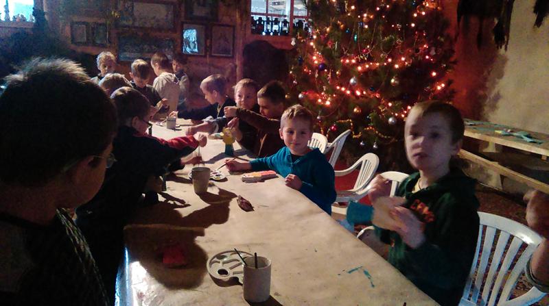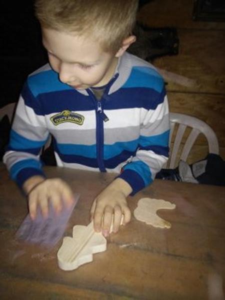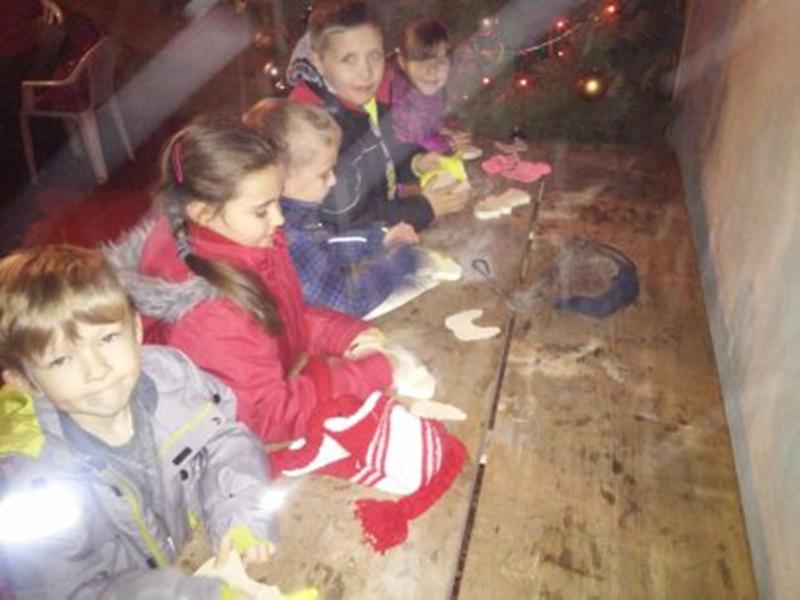 Pierwszą atrakcją było robienie aniołów. Dzieci miały za zadanie „wyszlifować” papierem ściernym drewniane aniołki. Wygładzone aniołki dzieci pomalowały farbami. Czynności te sprawiły im wiele radości. Prześcigały się w pomysłach malowania swoich aniołków.