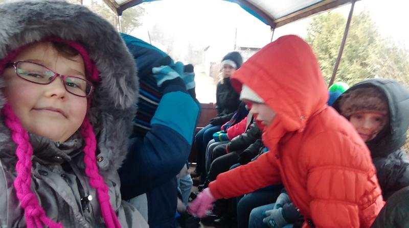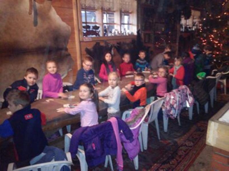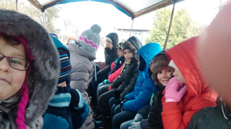 Po pracy twórczej gospodarz zaprosił uczestników wycieczki na dwór. Tam na dzieci czekały już wozy z końmi. Wszyscy udali się na przejażdżkę po okolicznym lesie w poszukiwaniu Mikołaja, którego nawoływały  głośnym śpiewem.