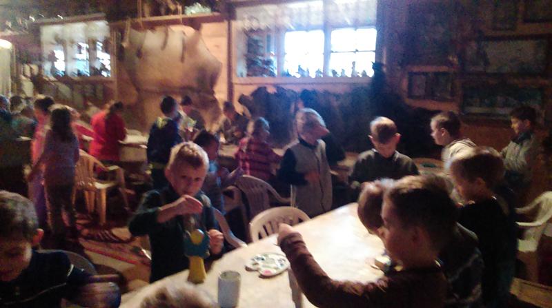 Po dotarciu na miejsce wszyscy zostaliśmy zaproszeni do drewnianej chaty, w której przywitał nas gospodarz. Opowiedział on  jakie atrakcje czekają na przybyłych gości.