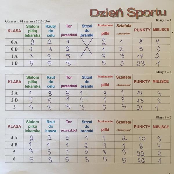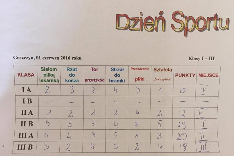 Rywalizacja sportowa toczyła się w sześciu konkurencjach, które przygotowali nauczyciele wychowania fizycznego przy współpracy z wychowawcami klas oraz uczniów (wolontariuszy) z naszego gimnazjum, zmaganiom towarzyszyły uśmiech i radość.Na podsumowaniu dnia, drużyny klasowe otrzymały pamiątkowe puchary i dyplomy, oraz słodycze.