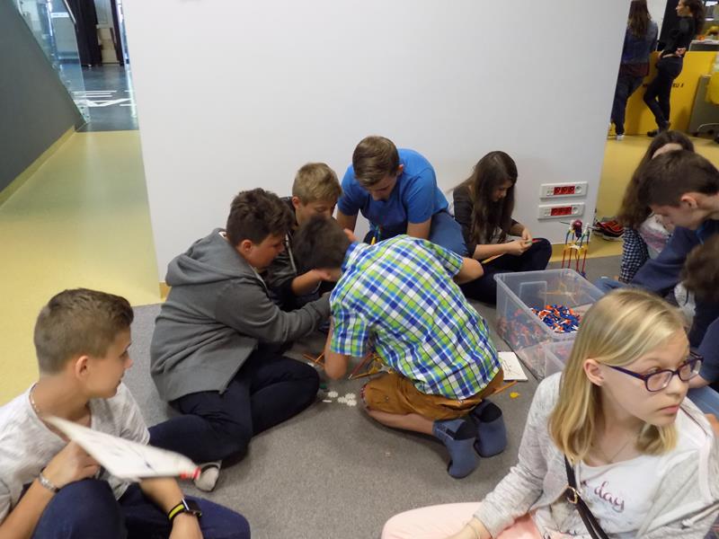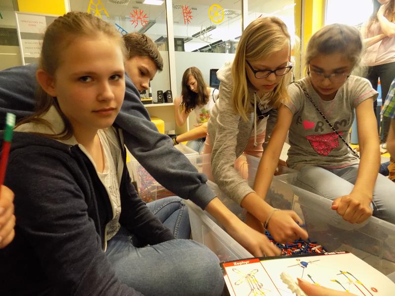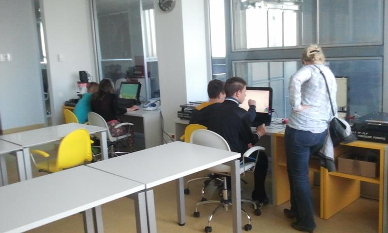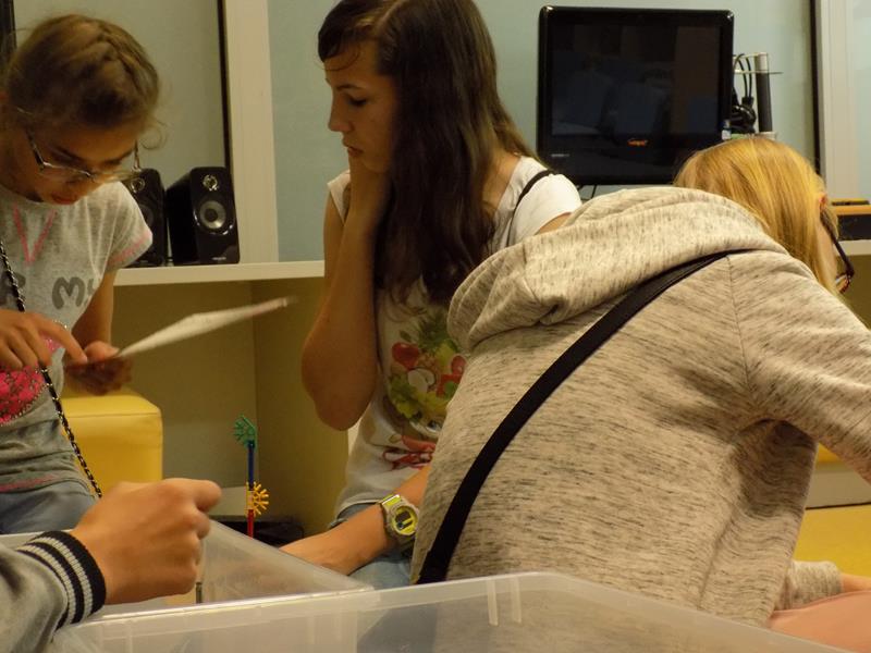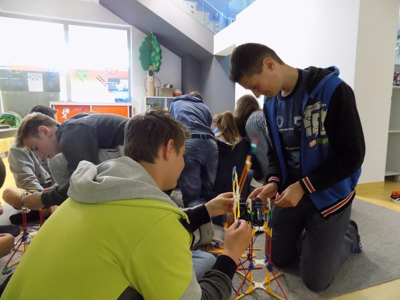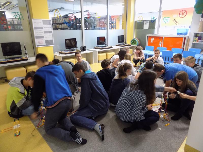 Zajęcia dla młodzieży zostały podzielone na trzy bloki tematyczne: LogiKit, MultiArt oraz MultiMusic. LogiKit to zajęcia edukacyjne z wykorzystaniem klocków K’nex, silników i oprogramowania TechnoLogicaKnex. Uczniowie mieli za zadanie zbudować figurę z klocków na podstawie instrukcji oraz uruchomić ją dzięki umieszczeniu oraz podłączeniu silników. MultiArt to zajęcia komputerowe wprowadzające uczniów w podstawy grafiki komputerowej oraz plastyki. Na zajęciach MultiMusic uczestnicy wycieczki mogli stworzyć własną muzykę, bazując na odpowiednim programie komputerowym. Uczniowie zapoznali się ze zbiorami bibliotecznymi: książkami, filmami, płytami CD, audiobookami, płytami winylowymi. Młodzież miała także możliwość wyszaleć się w Wykrzykniku, czyli niewielkim pomieszczeniu mierzącym poziom natężenia dźwięku.