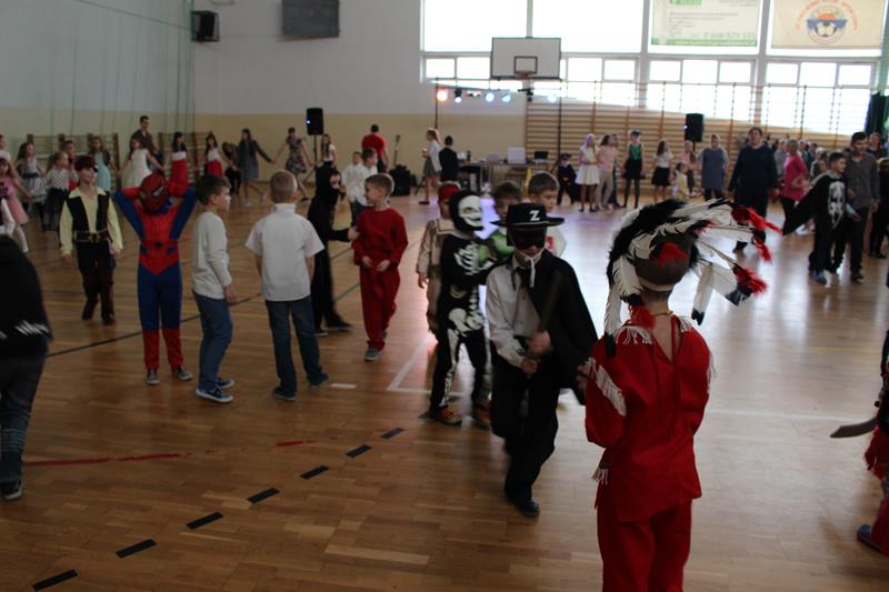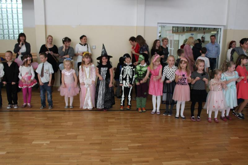 Dzieci chętnie brały w nich udział. Zarówno muzyka jak i atmosfera były rewelacyjne. Zabawa dostarczyła niezapomnianych wrażeń i emocji. Dzieci przebrane były w piękne i pomysłowe stroje, wcieliły się w różne postaci. W tym roku dominowały stroje o tematyce bajkowej, ale nie brakowało również uroczych zwierzątek, mieliśmy także jednego strażaka – tak na wszelki wypadek :). Zabawę uprzyjemnił pyszny poczęstunek przygotowany przez rodziców. Wszyscy bawiliśmy się wyśmienicie, bo tak zawsze w naszej szkole się bawimy!