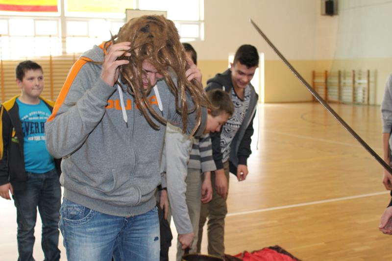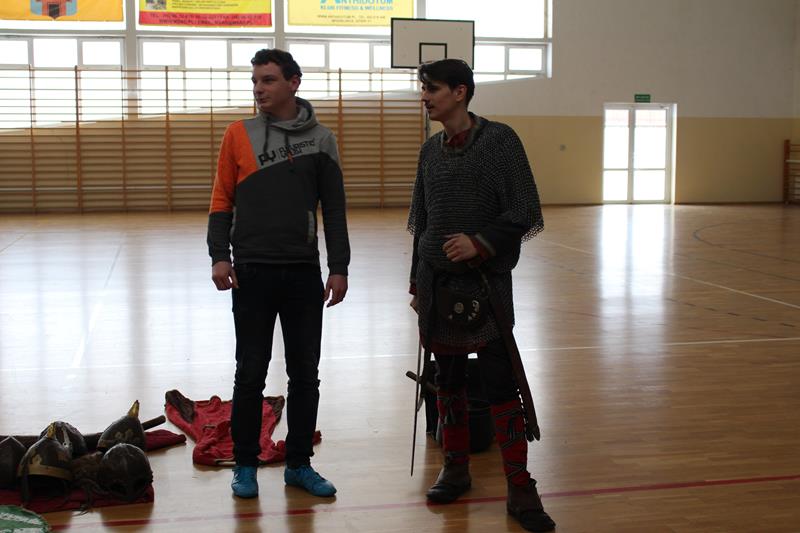 Dnia 25 stycznia 2016 roku w naszej szkole odbyła się nietypowa lekcja historii. Uczniowie przypomnieli sobie najważniejsze wydarzenia i daty z okresu Polski pierwszych Piastów. Mieli okazję wziąć udział w scenkach historycznych, przymierzyć repliki strojów średniowiecznych, z bliska obejrzeć zbroje rycerskie, hełmy, miecze, tarcze.