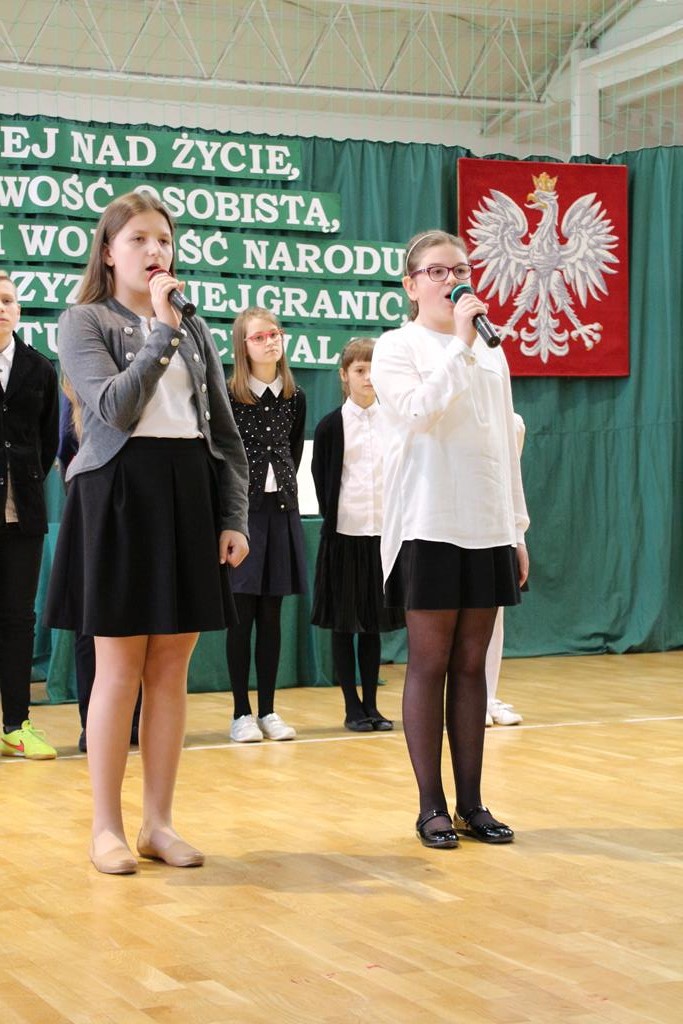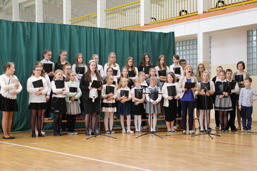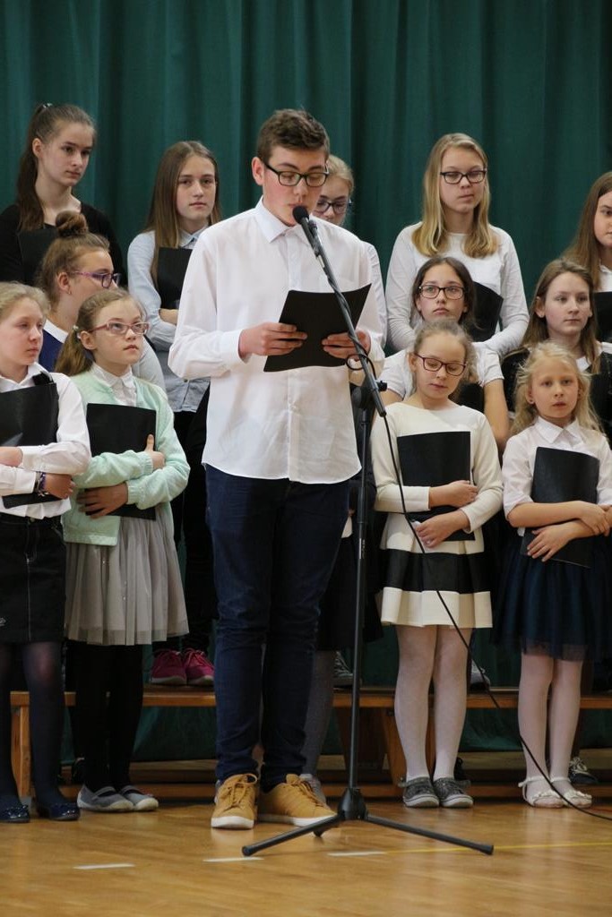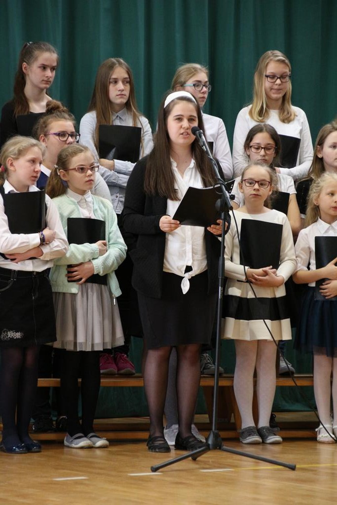 Po części artystycznej głos zabrał dyrektor szkoły Pan Mariusz Wangryn. Na widowni zgromadzili się wszyscy uczniowie szkoły wraz z gronem pedagogicznym. Nad właściwym przebiegiem uroczystości, przygotowaniem uczniów do występu, oprawą muzyczną oraz dekoracją sceny czuwały: Pani Monika Piekarska i Pani Katarzyna Litwin.