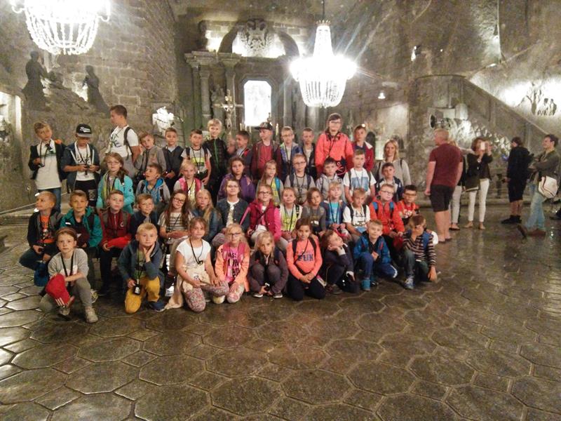 Po zwiedzaniu Ojcowa uczniowie udali się do autokaru i wyruszyli w dalszą podróż. Następnym punktem wycieczki była Kopalnia Soli w Wieliczce. Pod czujnym okiem swoich Pań dzieci miały możliwość obejrzenia solnych rzeźb, cudownego podziemnego jeziora i pięknych solnych komór.