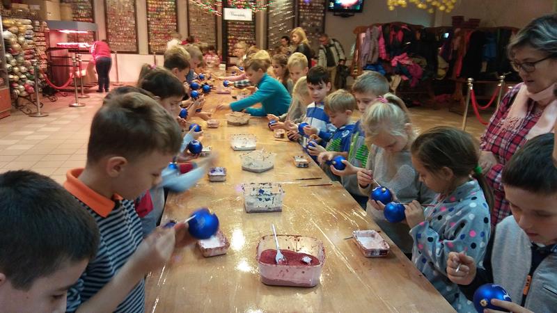 W tej podkarpackiej miejscowości, oddalonej od Goszczyna o 190 km, zwiedzaliśmy pierwsze na świecie Muzeum Bombki Choinkowej. Dzieci miały okazję piękne eksponaty- bombki tradycyjne oraz wytworzone w niespotykanych kształtach (auta, mikołaje, anioły i wiele, wiele innych…). Po zapoznaniu się z techniką wytwarzania bombek uczniowie wzięli udział w warsztatach, podczas których każdy własnoręcznie ozdobił swoją bombkę. Na koniec pobytu w Muzeum chętni zakupili pamiątkowe ozdoby choinkowe.