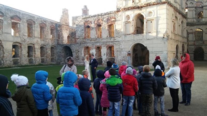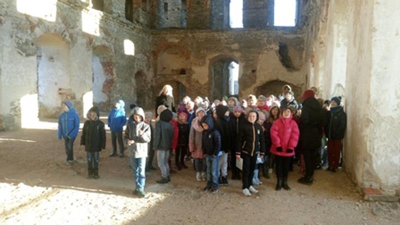 W drodze powrotnej zwiedziliśmy największą zabudowę pałacową w Europie przed powstaniem Wersalu- Zamek Krzyżtopór. Dzieci wysłuchały opowieści pani przewodnik dotyczących historii powstania zamku oraz wielu ciekawostek związanych z czasami świetności budowli. Trzecioklasiści poszerzyli swoje wiadomości zdobyte podczas niedawno realizowanych lekcji związanych z Zamkiem Krzyżtopór.