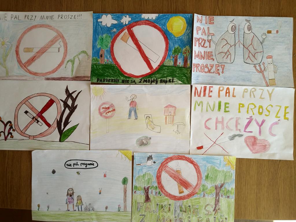 W ramach realizacji programów edukacyjnych: „Trzymaj formę”, „Czyste powietrze wokół nas”, „Nie pal przy mnie proszę”, „Znajdź właściwe rozwiązanie.”, uczniowie naszej szkoły wzięli udział w konkursie plastycznym organizowanym przez Powiatową Stację Sanitarno-Epidemiologiczną w Grójcu.