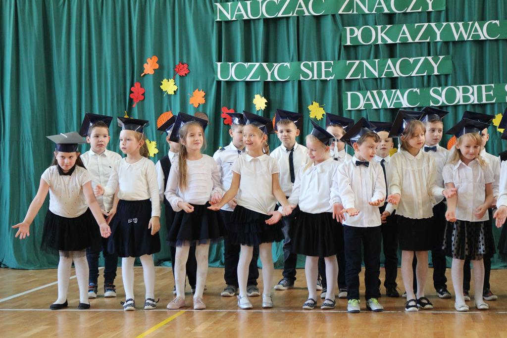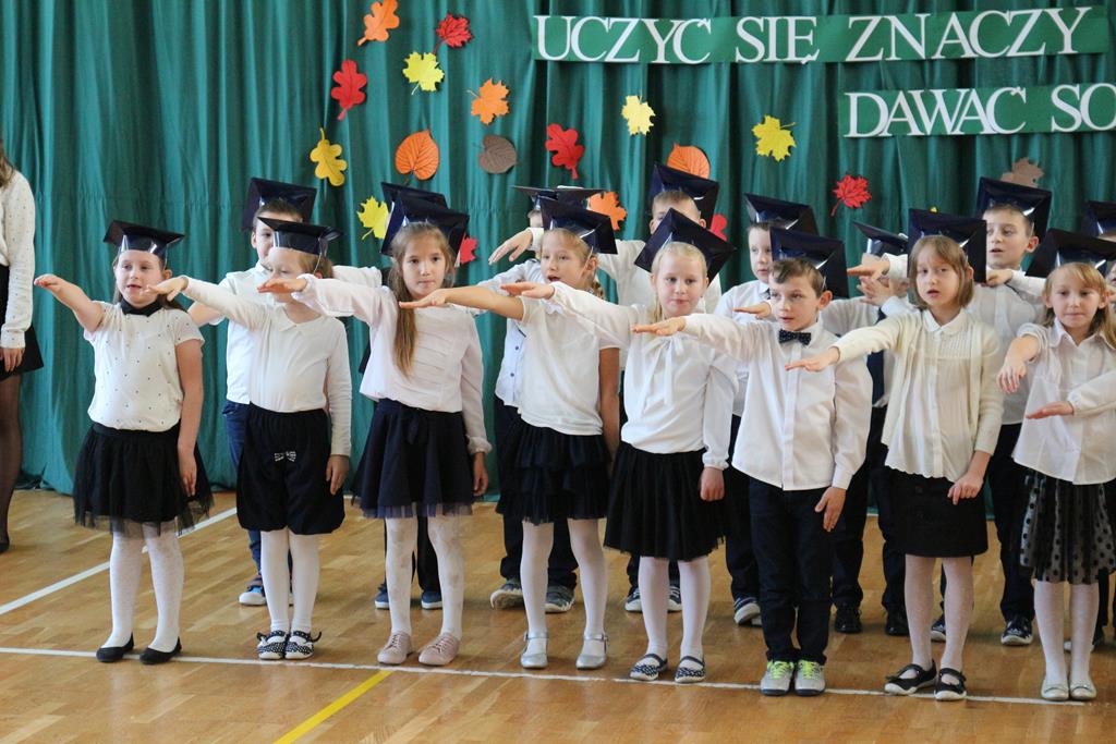 Niezwykle ważnym punktem uroczystości było ślubowanie i pasowanie na ucznia. Na tę chwilę z niecierpliwością czekał każdy pierwszoklasista. Najmłodsi uczniowie Szkoły Podstawowej w Goszczynie we wrześniu zasiedli w szkolnych ławkach i pod czujnym okiem Pani Anny Fatek i Pani Sylwii Mieńkowskiej przegotowywali się do tego wspaniałego wydarzenia .