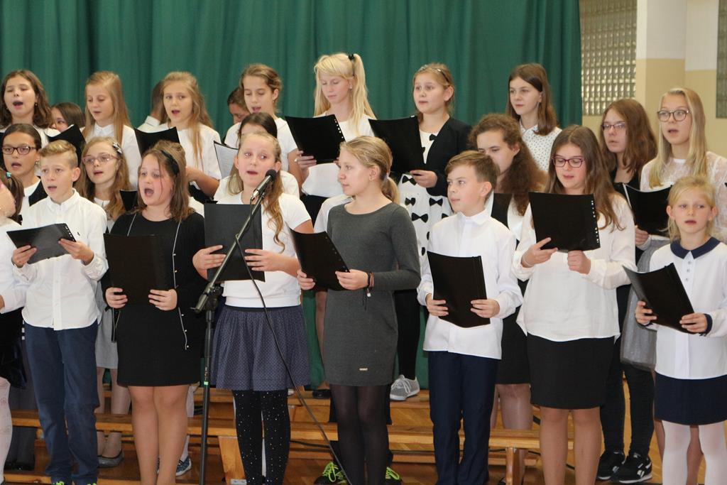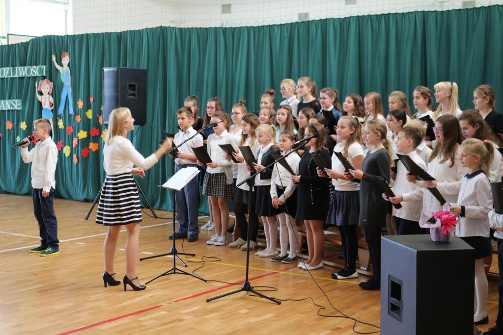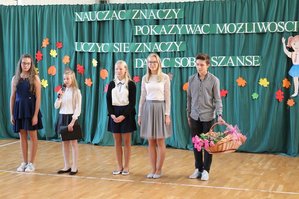Uroczystość rozpoczął Pan Dyrektor – Mariusz Wangryn, który powitał zebranych oraz podziękował za przybycie szanownym gościom: Panu Sławomirowi Słabuszewskiemu - Wójtowi Gminy Goszczyn oraz emerytowanym nauczycielom, którzy w tym dniu zaszczycili nas swą obecnością. Po krótkim wstępie na scenę wkroczyli uczniowie. Przedstawiciele Samorządu Uczniowskiego przypominali o potrzebie kształcenia i roli nauczyciela. Młodzi recytatorzy wierszem sławili nauczyciela-pedagoga, wychowawcę. Cały występ wzbogaciły utwory muzyczne przygotowane przez chór szkolny pod kierownictwem Pani Moniki Piekarskiej.