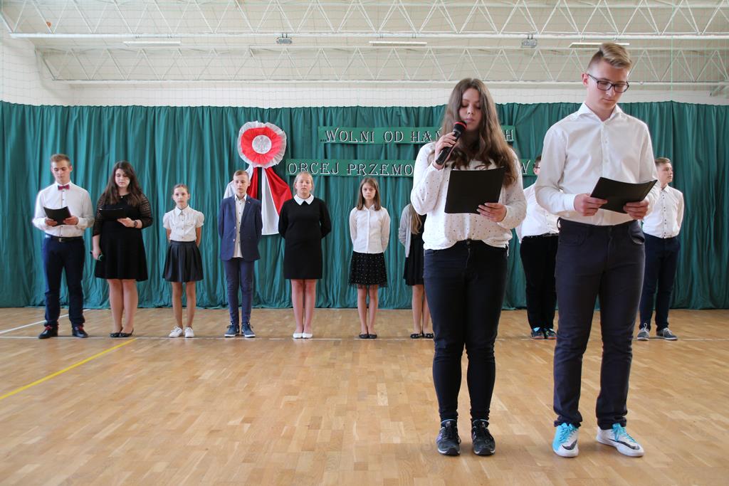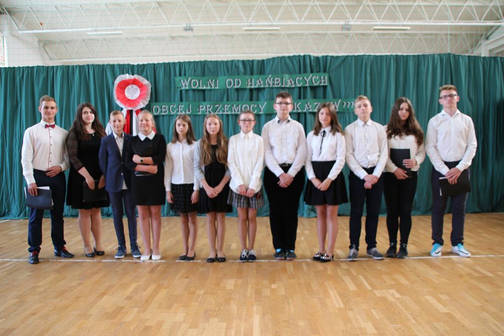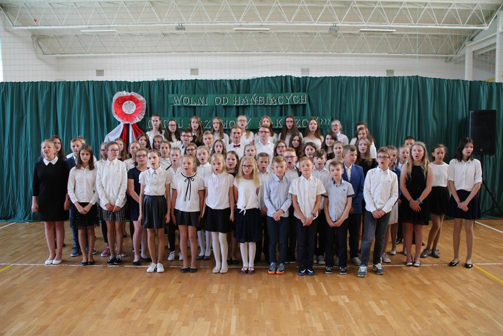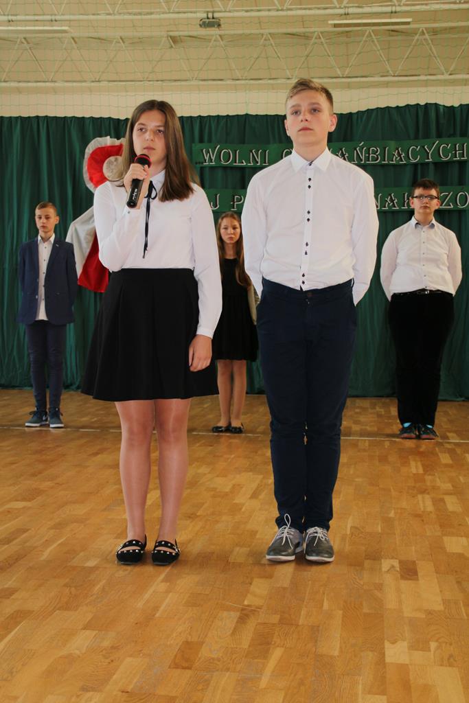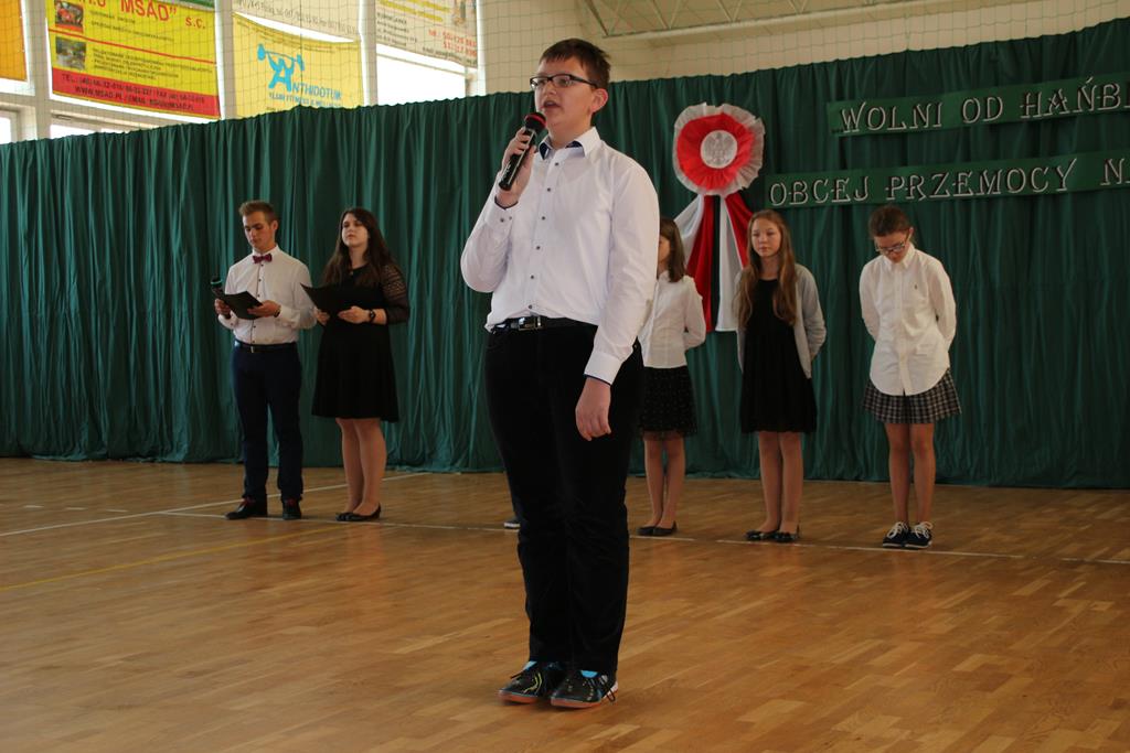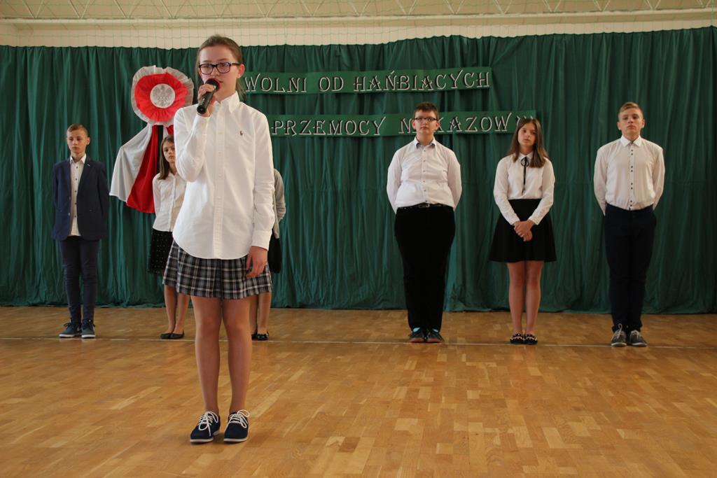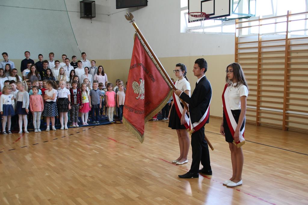 Dnia 7 maja w Publicznej Szkole Podstawowej w Goszczynie odbył się uroczysty apel z okazji rocznicy uchwalenia Konstytucji 3. Maja. Aby upamiętnić to ważne wydarzenie z historii Polski, klasy 6a szkoły podstawowej i 3a gimnazjum pod opieką P. Katarzyny Litwin i P. Marty Gałkowskiej przygotowały występ o patriotycznej wymowie. Uczniowie przybliżyli krótko wydarzenia towarzyszące uchwaleniu Konstytucji oraz wyrecytowali wiersze, aby uczcić bohaterów tamtych czasów. Występ uświetnił chór szkolny pod opieką P. Moniki Piekarskiej, prezentując pieśni i piosenki patriotyczne.