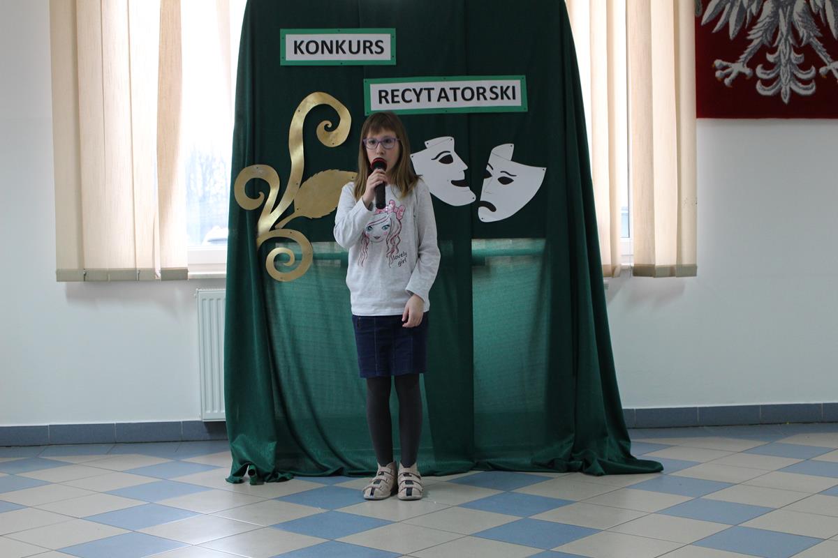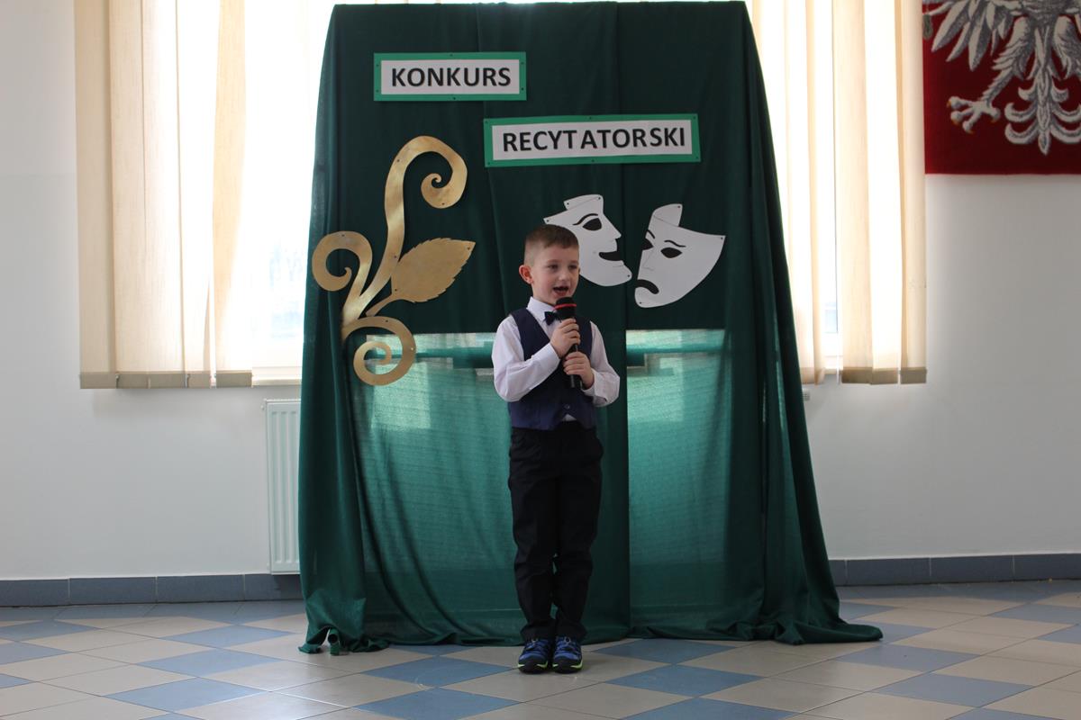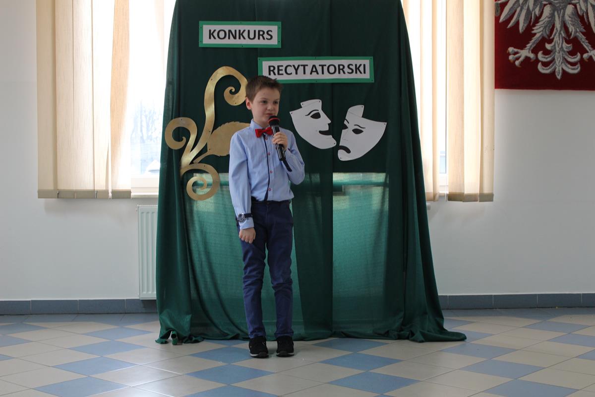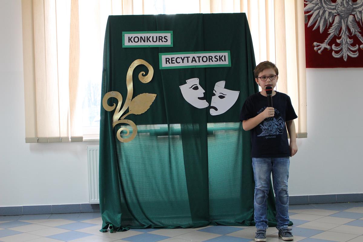 15 lutego 2019 roku w naszej szkole odbył się Gminny Konkurs Recytatorski. Zebrani goście mieli możliwość wysłuchania deklamacji „Samochwały” czy „Skarżypyty” Jana Brzechwy, „Stefka Burczymuchy” Marii Konopnickiej, „Nic dwa razy” Wisławy Szymborskiej oraz wielu innych recytacji. W konkursie wzięło udział 26 uczestników. A oceny wystąpień dokonało oraz jury w składzie – p. Beata Turzyńska oraz p. Karolina Grzechnik.