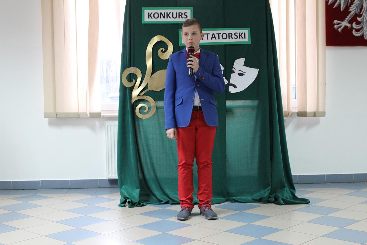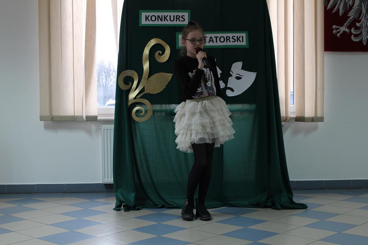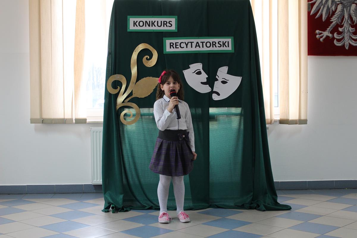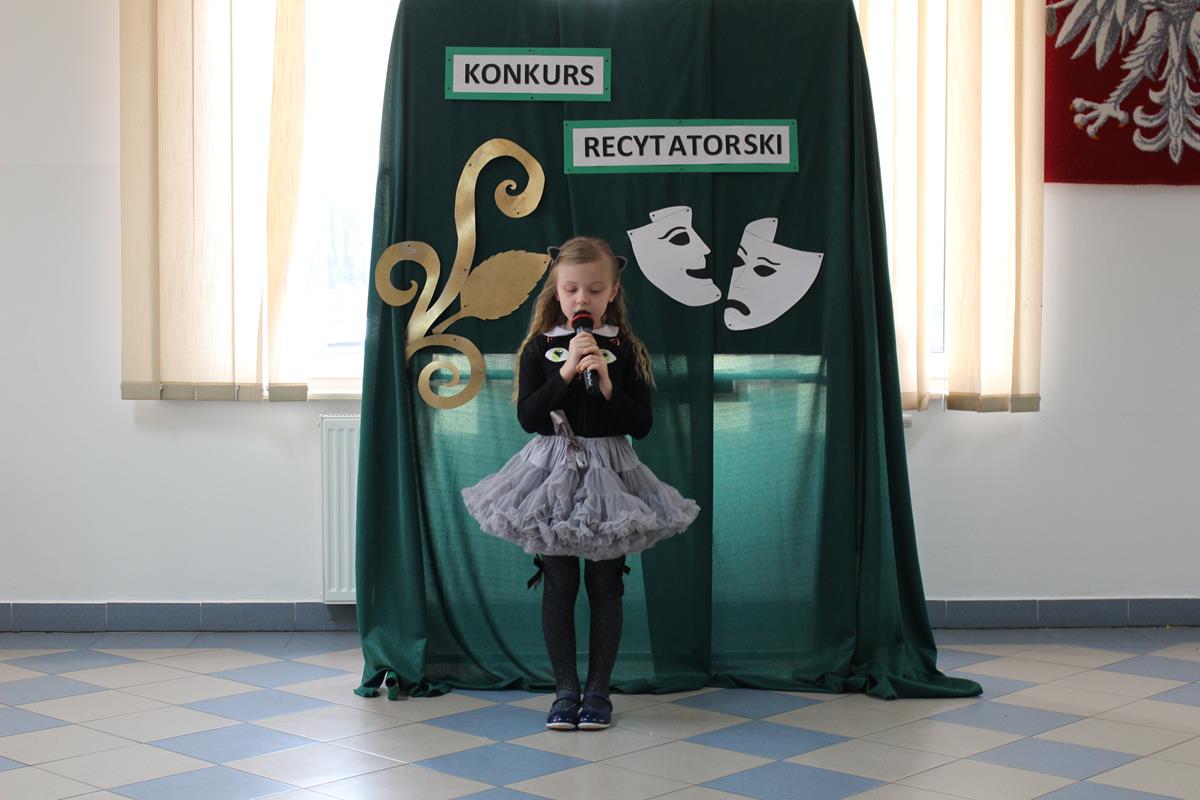 15 lutego 2019 roku w naszej szkole odbył się Gminny Konkurs Recytatorski. Zebrani goście mieli możliwość wysłuchania deklamacji „Samochwały” czy „Skarżypyty” Jana Brzechwy, „Stefka Burczymuchy” Marii Konopnickiej, „Nic dwa razy” Wisławy Szymborskiej oraz wielu innych recytacji. W konkursie wzięło udział 26 uczestników. A oceny wystąpień dokonało oraz jury w składzie – p. Beata Turzyńska oraz p. Karolina Grzechnik.