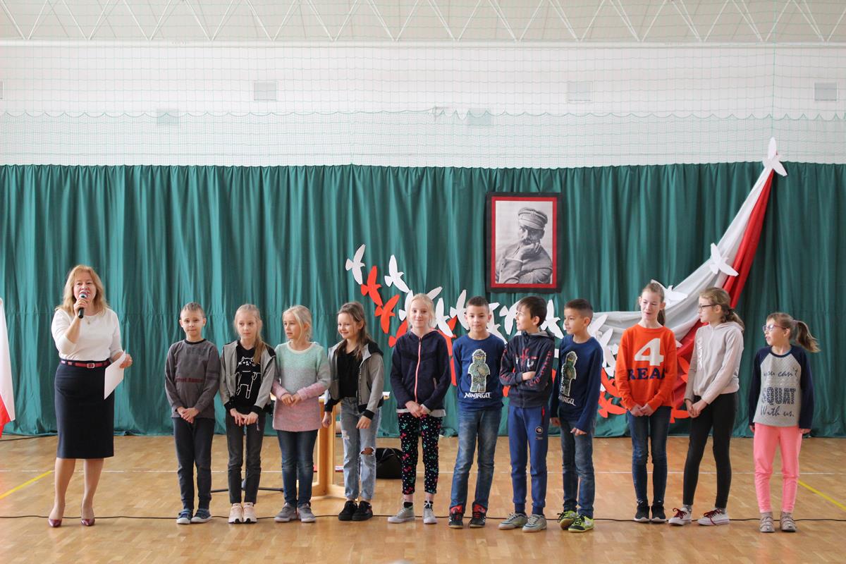 W poniedziałek 7 stycznia odbyła się niecodzienna lekcja historii pt. „Kocham Polskę”. Lekcję poprowadziła pani Mariola Wiewiór, była mieszkanka Goszczyna i były nauczyciel naszej Szkoły. W programie autorka wykorzystała własną twórczość patriotyczną oraz ciekawe pomoce dydaktyczne przybliżające czasy rozbiorów, walki o jej niepodległość i jej odzyskanie.