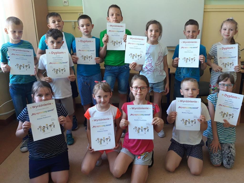 Na konkurs przygotowanych zostało 72 prace, wybór zwycięzcy był bardzo trudny. Wyróżnienie otrzymało 25 prac, a nagrodzonych zostało 21 uczniów. Bardzo cieszy nas myśl, iż w przyszłości wśród naszych absolwentów będziemy mieli: lekarzy, weterynarzy, żołnierzy, policjantów, piosenkarki, fryzjerki, tancerki, aktorki, piłkarzy oraz piłkarkę!