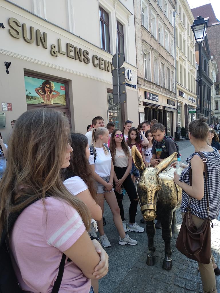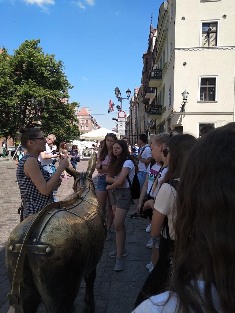 Jednodniowy wyjazd obfitował w atrakcje. Spacerując uliczkami Starego Miasta, uczniowie podziwiali wspaniałą architekturę. Młodzież została zapoznana z historią najpopularniejszych i najpiękniejszych miejsc w Toruniu. Pani przewodnik w ciekawy sposób opowiadała o pomniku Mikołaja Kopernika, Ratuszu Staromiejskim, statuetce Flisaka, Krzywej Wieży i wielu innych miejscach.