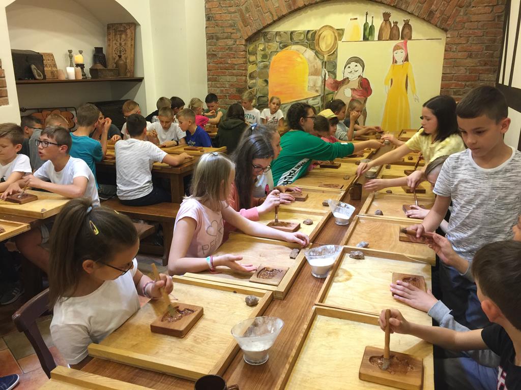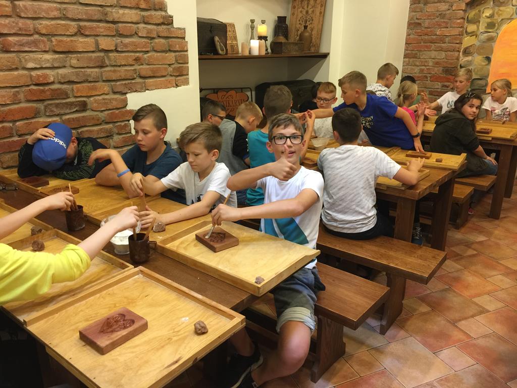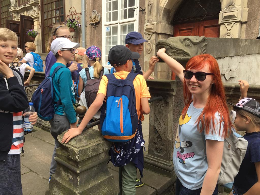 Dnia 20.05 wyruszyliśmy z samego rana, aby na godzinę 10 dotrzeć do Torunia, gdzie czekał na nas już przewodnik. Pan przewodnik odprowadził nas po mieście, gdzie zobaczyliśmy: mury miejskie, Krzywą Wieżę, dom i pomnik Mikołaja Kopernika, ruiny zamku krzyżackiego, pomnik Filusia oraz „karnego” Osiołka, fontannę z Flisakiem oraz Stare Miasto. Ostatnią atrakcją w Toruniu były warsztaty z wypiekania pierników w Piekarni Mistrza Bogumiła. Dzieci dostały ciasto, wybrały odpowiednie foremki do pierników i z ochotą zabrały się do wyrabiania pamiątkowych ciastek. W trakcie warsztatów młodzi czeladnicy zapoznali się z historia pieczenia pierników, przyprawami oraz poznali ciekawe legendy dotyczące tychże pierników. Po zwiedzaniu pięknego miasta udaliśmy się w dalszą podróż, aby dotrzeć do Kątów Rybackich, gdzie mieliśmy noclegi. Po przydzieleniu pokoi oraz zjedzeniu obiadokolacji, udaliśmy się na spacer nad brzegiem morza, gdzie szukaliśmy muszelek oraz bursztynów. Wszystkie dzieci były zachwycone.