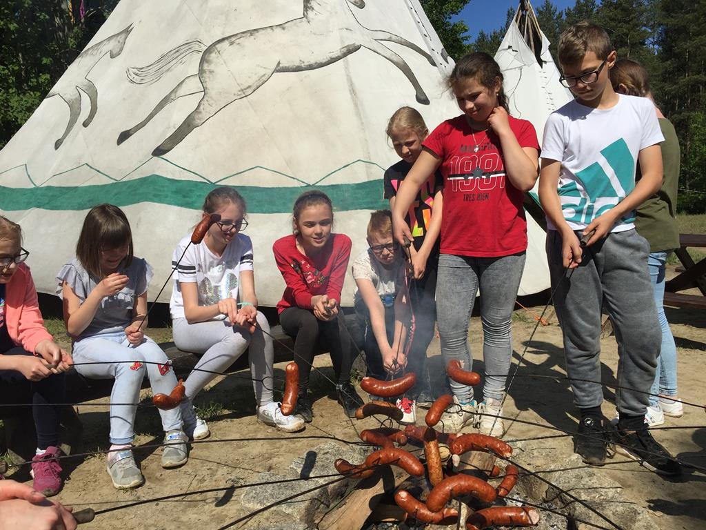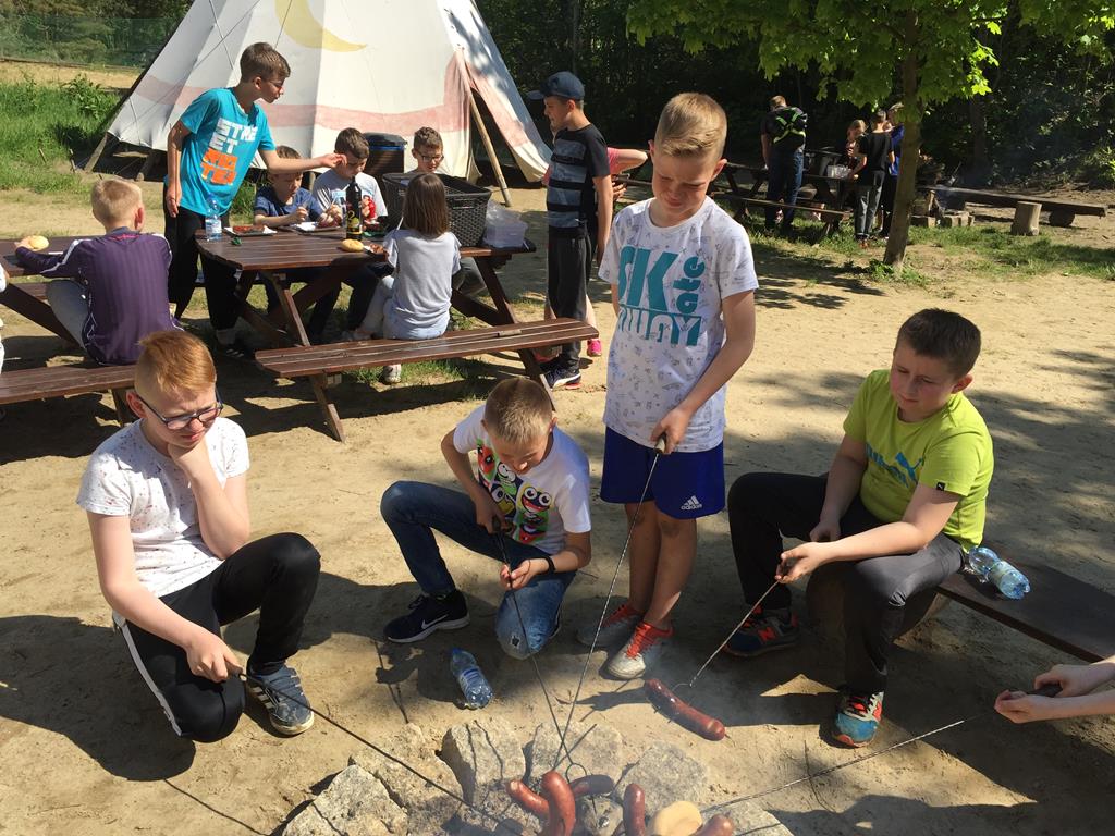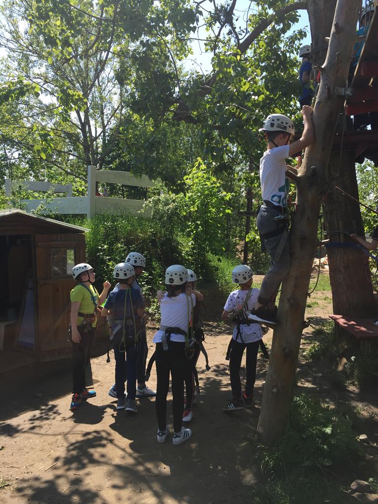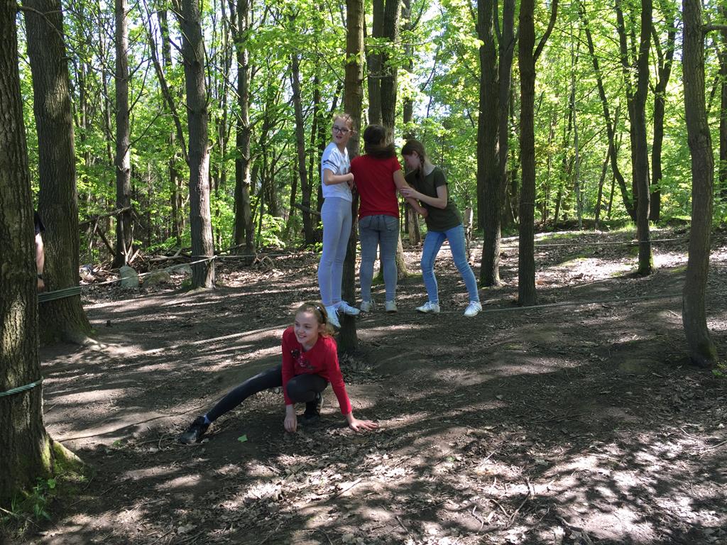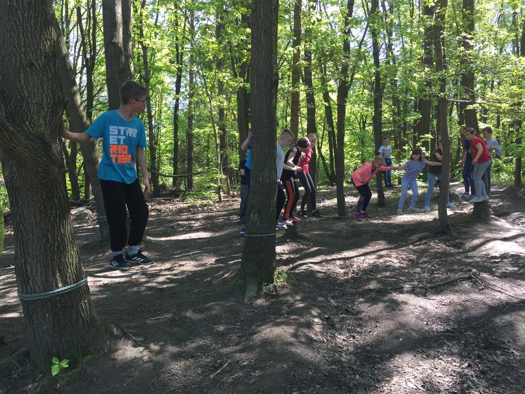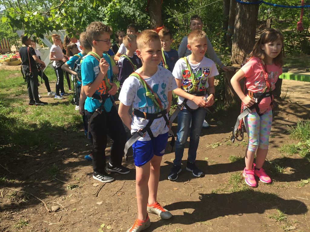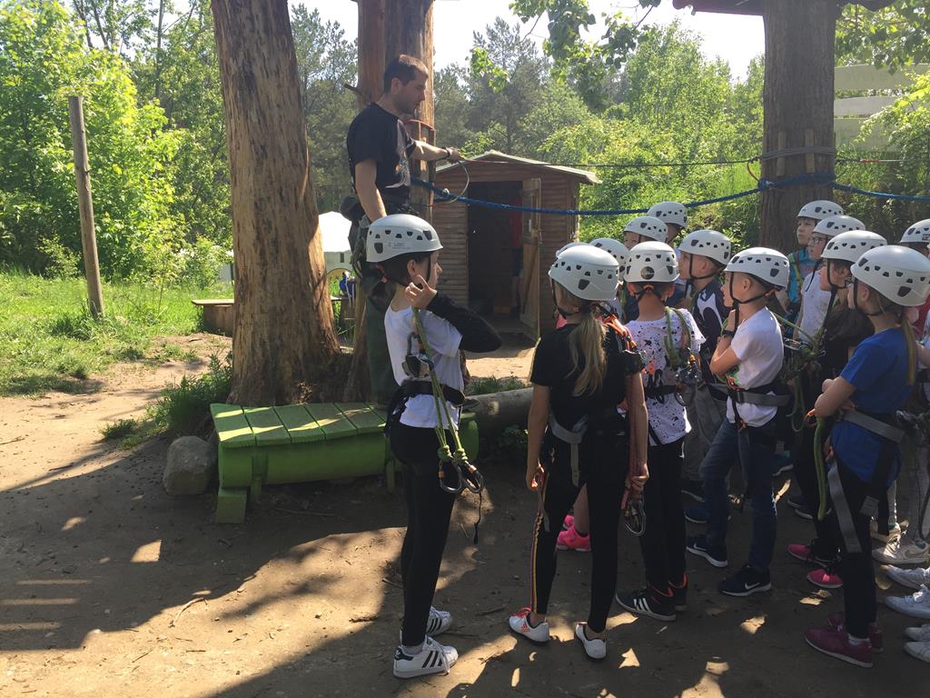 Dzień 22.05 był pełen przygód, ponieważ udaliśmy się do Adventure Park Kolibki w Gdyni. Na miejscu zostaliśmy podzieleni przez panów Instruktorów na dwie grupy. Każda z grup miała do przebycia park linowy oraz spacer po lesie, gdzie były do wykonania różne zadania. Park linowy składał się z mostów linowych, drabin, siatek, tyrolki oraz drewnianych podestów, które były zamocowane na drzewach. Uczestnicy zostali wyposażeni w bezpieczny sprzęt wspinaczkowy i przeszli szkolenie, jak obsługiwać się karabińczykami. Przeszkody zawieszone na drzewach dostarczy dzieciom mnóstwa pozytywnych emocji oraz pozwoliły pokonać różne lęki. Za to w lesie na uczestników czekały takie przeszkody jak: chiński mur, labirynt w ciemności, tor przeszkód. Po ukończeniu wszystkich przeszkód było ognisko, gdzie każdy sam mógł upiec sobie kiełbaski.