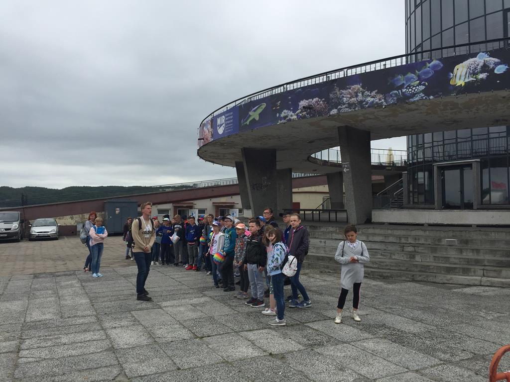 Dnia 23.05 udaliśmy się do Gdyńskiego Akwarium, które mieści się aż na 3 poziomach. Na miejscu każdy sam miał możliwość zobaczyć różne gatunki zwierząt oraz roślin wodnych. Z ciekawszych okazów znajdujących się na miejscu to: konik morski, igielnik, skrzydlica ognista, anakonda, węgorze elektryczne, rozgwiazdy itp. Po obejrzeniu wszystkich sal udaliśmy się na wykład o Morzu Bałtyckim, gdzie dowiedzieliśmy się wielu interesujących faktów, a następnie odbyliśmy warsztaty z rozpoznawania muszli oraz żyjątek wodnych. Po wizycie w Akwarium Gdyńskim udaliśmy się do portu, gdzie szczęśliwie udało się nam zobaczyć "Dar Młodzieży" oraz "Dar Pomorza" czy też "ORP Błyskawica". Kolejnym punktem naszej wycieczki był Sopot, a w nim spacer po najdłuższym molo w Polsce, które mierzy aż 511,5 m. Gdy wróciliśmy do ośrodka czekały na nas dwie niespodzianki. Pierwszą z nich była lekcja o bursztynach, a drugą dyskoteka na zakończenie wyjazdu.