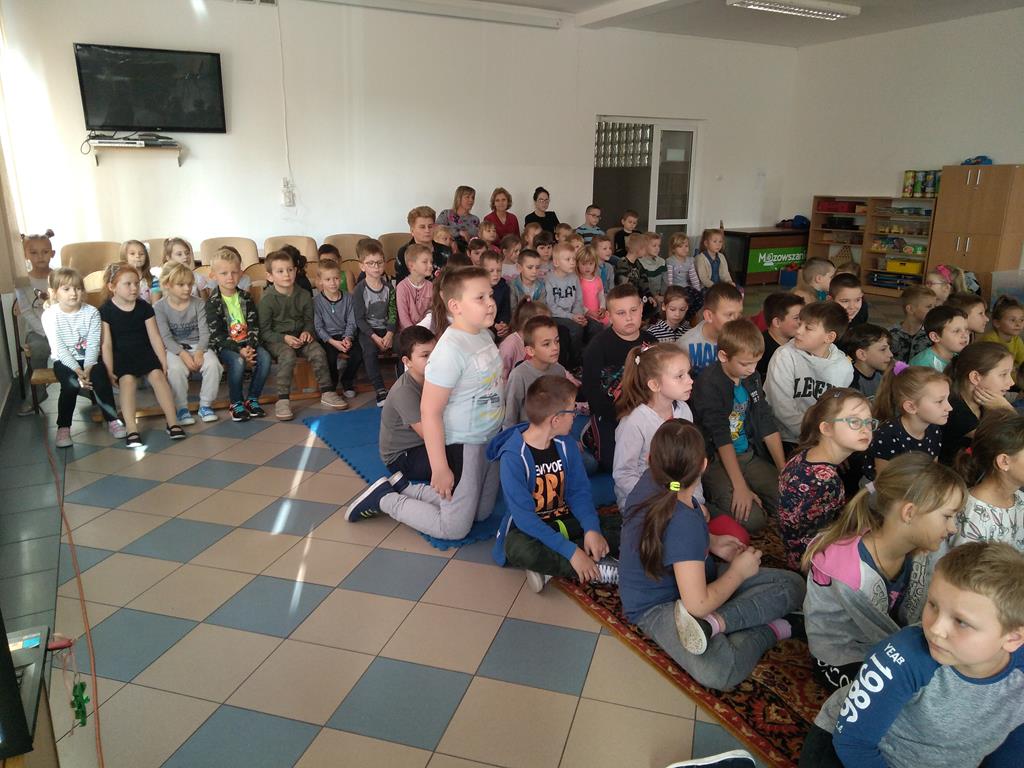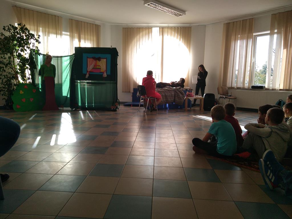 28 października świetlica szkolna zmieniła swoje oblicze… Jak się okazało, ławki szkolne zamieniły się w łóżko dla chorej babci, a okna zostały przysłonięte ciemnym, gęstym lasem… Uczniowie klas O-3 mieli możliwość obejrzenia krótkiego spektaklu teatralnego pt. „Czerwony Kapturek” przygotowanego przez uczestników kółka czytelniczego. W rolę głównej bohaterki wcieliła się Weronika Banaszewska, wilka – Inga Pietrusińska, babcię zagrała Marta Kociszewska, rodziców – Oliwia Markiewicz oraz Jakub Konarzewski, rolę leśniczego odegrała Lena Zielińska, drzewo – Julia Grzegorzewska. Narratorem została Wiktoria Metelska. W organizacji przedstawienia pomogli nam także członkowie Samorządu Uczniowskiego.