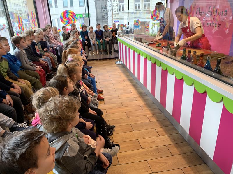 W ramach wyjazdu mikołajkowego klasa 1 i klasa 0b udała się na wycieczkę do Warszawy. Głównym celem wyjazdu było zwiedzanie Stadionu Narodowego a także pobyt w Smart Kids Planet czyli centrum zabaw kreatywnych. Dzieci wzięły również udział w warsztatach z Błękitem, które miały przybliżyć znajomość fauny i flory oceanu. Dzieci odwiedziły również Manufakturę Cukierków gdzie miały okazję zapoznać się z ręczną produkcją cukierków, lizaków i innych wyrobów cukierniczych.