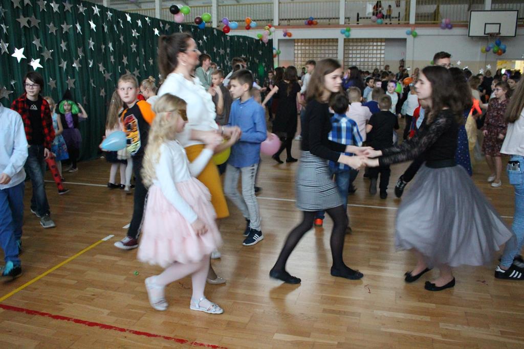 10 stycznia w naszej szkole odbyła się zabawa choinkowa. Zabawę uświetnił zespół muzyczny BLUE STYLE. Sala gimnastyczna wyglądała w tym dniu bardzo świątecznie. Młodzież szkolna udekorowała ją mnóstwem srebrnych gwiazdek i kolorowych balonów. Nasza sala gimnastyczna stała się na 3 godziny salą balową. Królowały na niej księżniczki, wróżki, czarownice, spidermeni , policjanci i piraci.