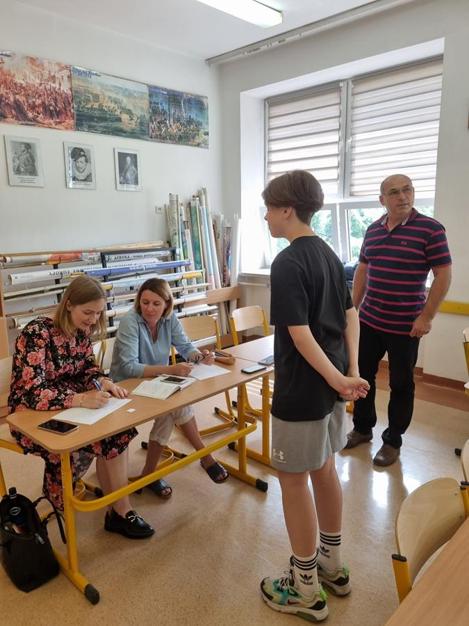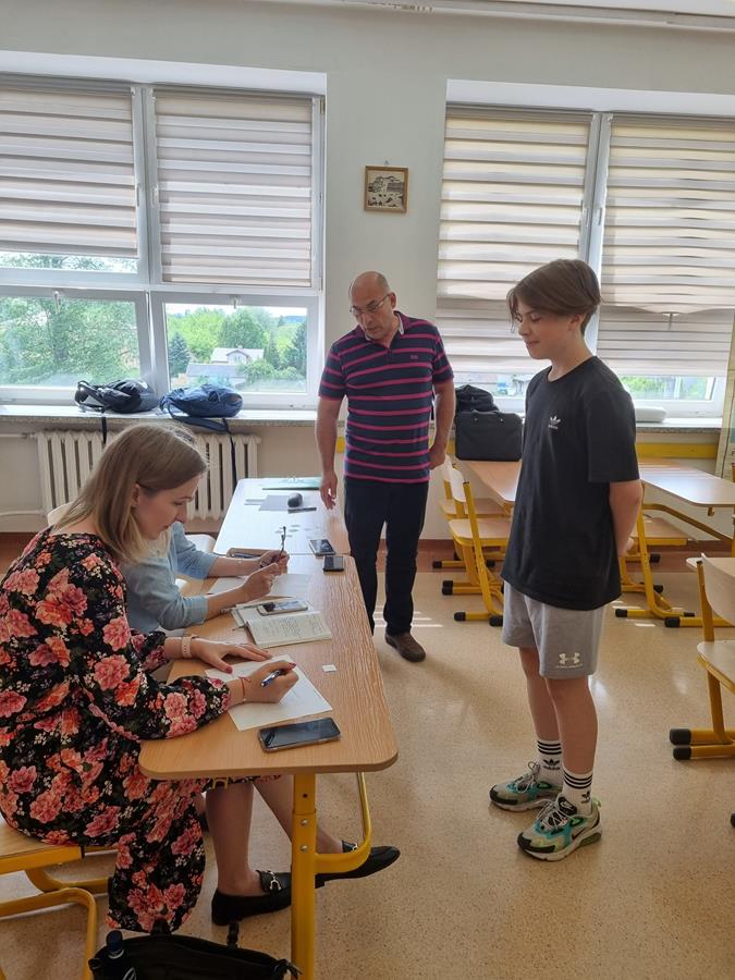 Do konkursu przystąpiło trzech uczniów klas ósmych: Sebastian Bernacki, Marcin Popkowicz i Jan Zaranek. Podczas wyczerpujących zmagań, które trwały całą godzinę, uczniowie zajęli następujące miejsca: