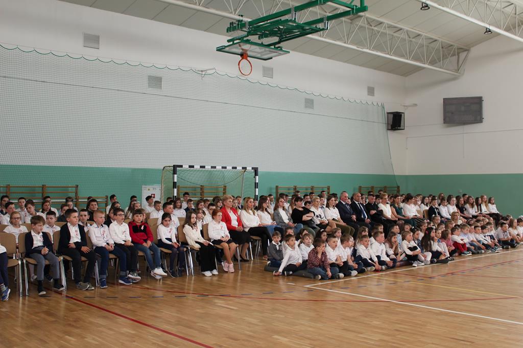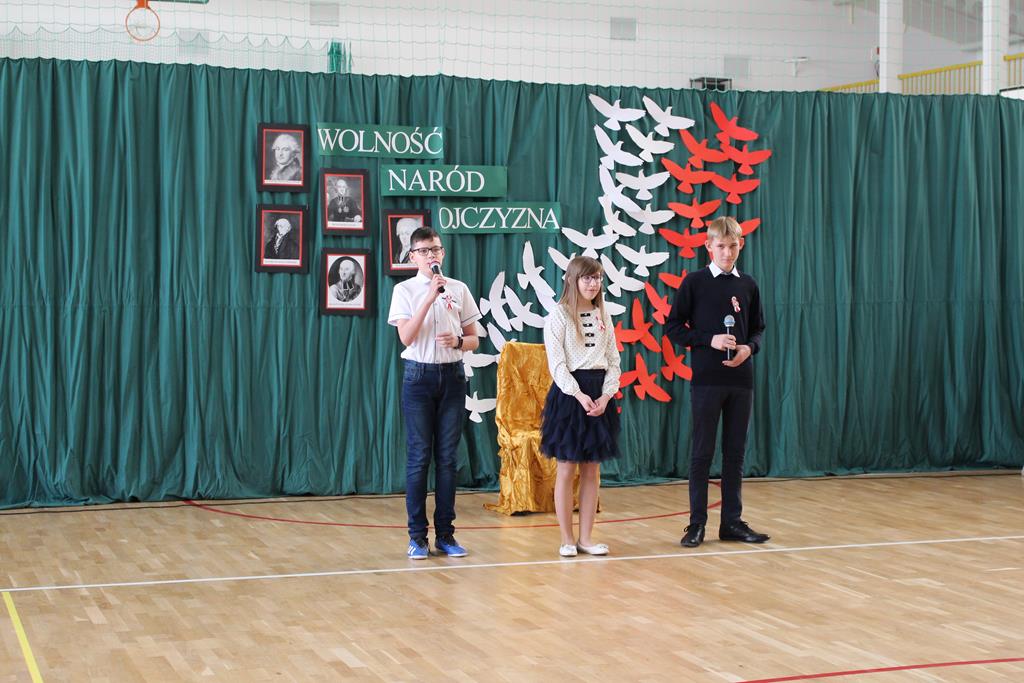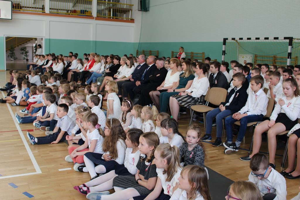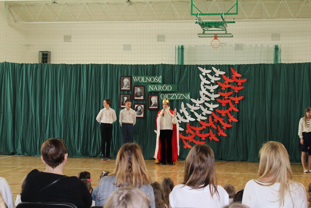 W środę, 04.05.2022 roku w naszej szkole obchodziliśmy rocznicę uchwalenia Konstytucji 3 Maja. Apel z okazji Święta Konstytucji 3 Maja jest wpisany co roku w kalendarz uroczystości naszej szkoły. Jest to wspaniała okazja, by uzmysłowić wszystkim, jak ważną rolę i znaczenie mają słowa: Wolność, Naród i Ojczyzna. By podkreślić patriotyczny charakter uroczystości, wszyscy zebrani przybyli na halę w strojach galowych z przypiętymi do piersi biało-czerwonymi kotylionami. Po uroczystym wprowadzeniu pocztu sztandarowego, cała społeczność Publicznej Szkoły Podstawowej w Goszczynie odśpiewała hymn państwowy. Następnie uczniowie klasy 8a i chór szkolny zaprezentowali część artystyczną. W wystąpieniach, wierszach i piosenkach opowiedzieli zebranym o doniosłym i ważnym dla Polski wydarzeniu uchwalenia Konstytucji 3 Maja. Ten apel był dla całej społeczności szkolnej krótką lekcją historii i skłonił wszystkich do refleksji oraz zadumy.