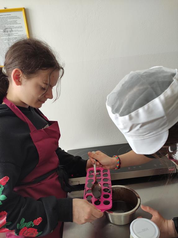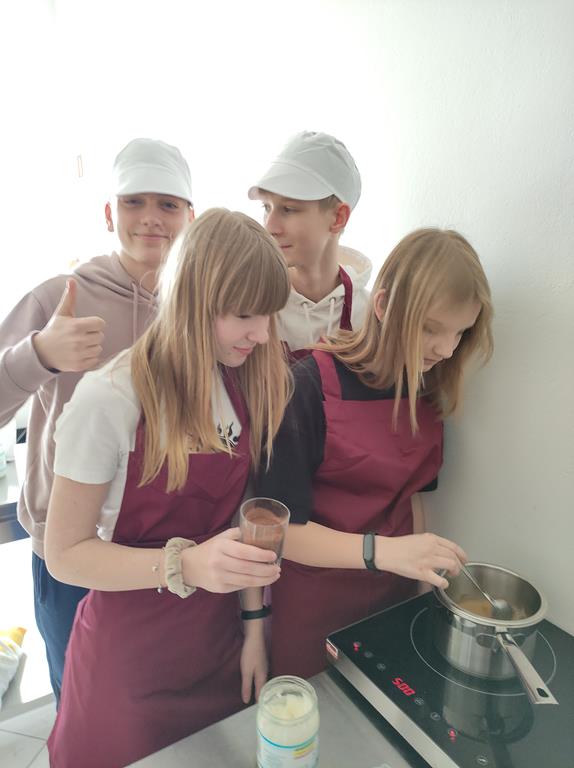 Kolejne zajęcia w ramach innowacji pedagogicznej „Obserwuję, badam, eksperymentuję” polegały na produkcji „EKO-CZEKOLADY”. Do jej wytworzenia zostały użyte następujące surowce: cukier w postaci zdrowego miodu, tłuszcz kokosowy i kakao bogate w magnez. Podczas przygotowywania wykorzystany został sprzęt z pracowni kulinarnej, urządzonej i wyposażonej w ramach programu „LABORATORIA PRZYSZŁOŚCI”. Uczniowie w trakcie zajęć kształtowali i rozwijali swoje zdolności manualne, techniczne oraz dobrej organizacji i dbania o porządek na stanowisku pracy. W galerii zdjęć można zauważyć uśmiechy na twarzach uczniów oraz umiejętność współpracy w grupie. Było słodko, pysznie i zdrowo!