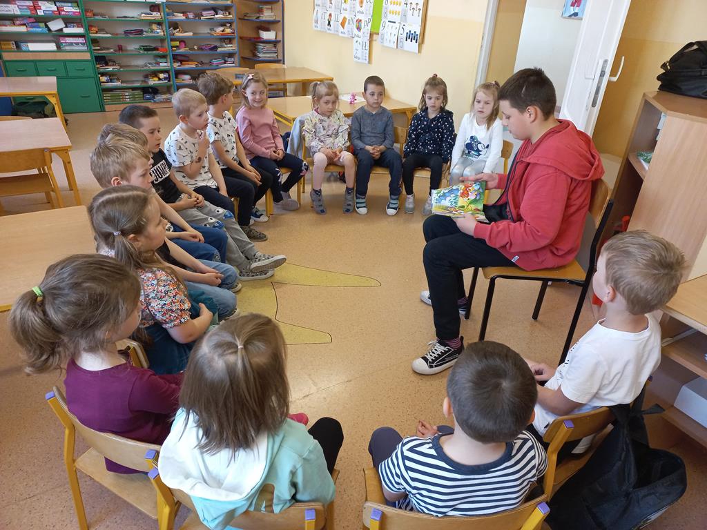 Z okazji trwającego właśnie Tygodnia Bibliotek nasi uczniowie mają okazję wziąć udział w kolejnych akcjach czytelniczych. W oddziałach zerowych powstały minibiblioteczki - uczniowie mogą w wolnych chwilach przeglądać najnowsze tytuły oraz wypożyczać i oddawać książki bezpośrednio u swojego wychowawcy. Przedszkolaki biorą także udział w akcji "Poczytaj mi, kolego" - starsi uczniowie systematycznie odwiedzają najmłodszych oraz czytają im wybrane bajki i baśnie.