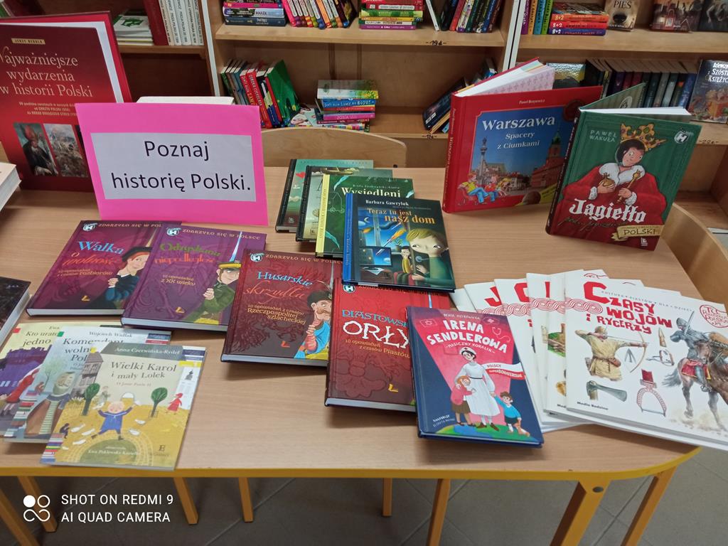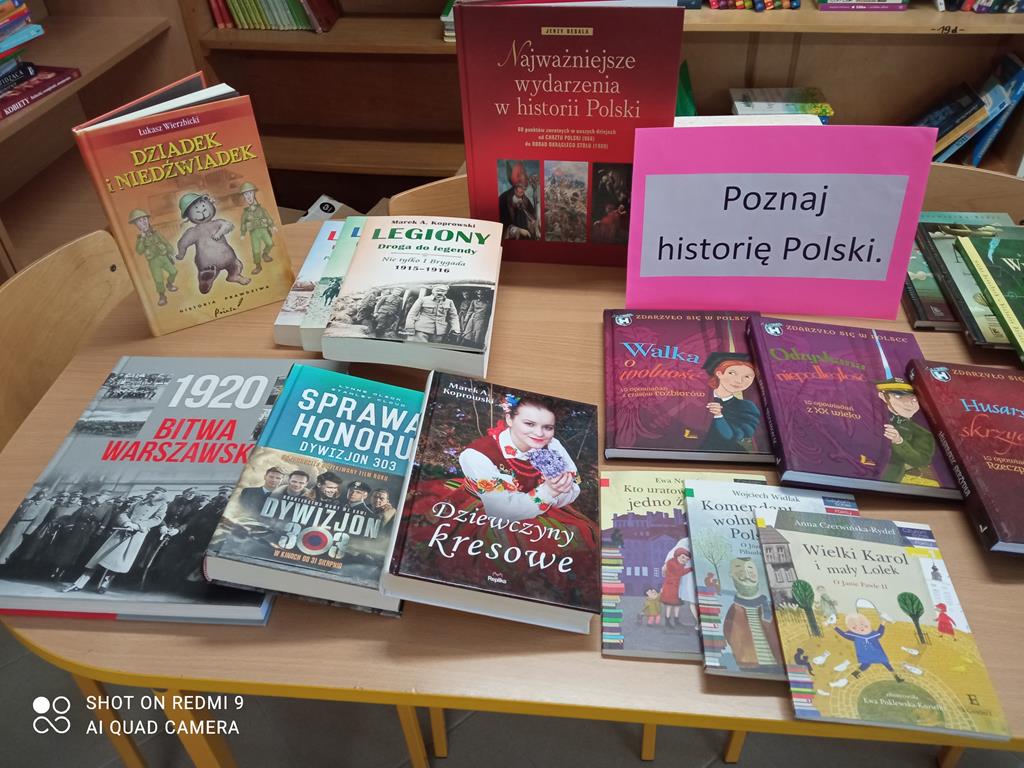 W bibliotece powstała także wystawa książek dotyczących historii naszej ojczyzny oraz opowiadających historie znanych Polaków. Jako pierwsi mogli obejrzeć wystawę uczniowie klasy III, którzy wysłuchali fragmentu książki "Wysiedleni" Doroty Combrzyńskiej-Nogali oraz wypożyczyli tytuły, które ich szczególnie zainteresowały.