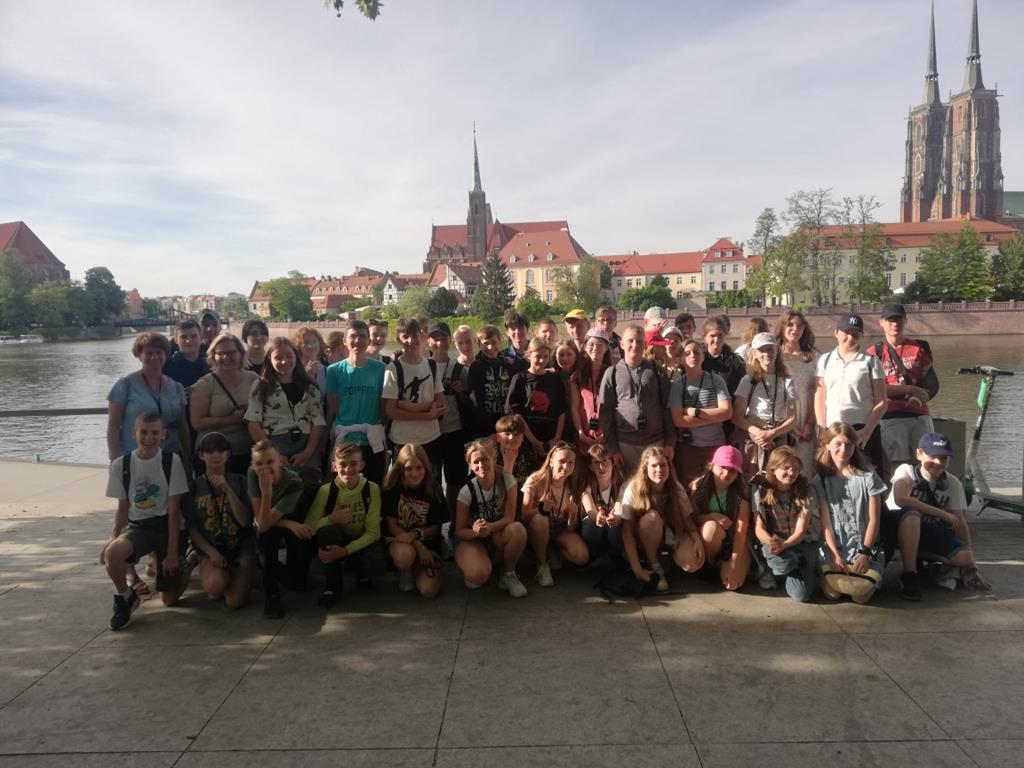 Dnia 18 maja z wielką przyjemnością wyruszyliśmy na wyczekiwaną wycieczkę do Wrocławia. W czasie podróży wszystkim dopisywały humory, więc mimo długiej drogi, czas mijał nam szybko. Zwiedzanie Wrocławia rozpoczęliśmy od gry miejskiej. Dzięki niej uczniowie zdobywali wiedzę na temat zabytków i ważnych miejsc wokół Rynku we Wrocławiu. Zwycięzcy, i ci którym nie udało się odnaleźć wszystkich zaznaczonych na mapie miejsc, świetnie się bawili. Kolejnym punktem programu był spacer po Ogrodzie Botanicznym, podczas którego rozpoznawaliśmy okazy ciekawych roślin. Potem przyszedł czas na nocleg w hotelu. To zawsze jest jeden z najbardziej wyczekiwanych punktów wycieczki. Wieczorne zabawy i rozmowy przerwała dopiero cisza nocna.
