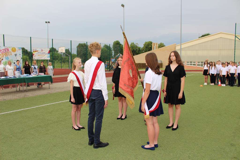 Po miesiącach wytężonej pracy, 23 czerwca 2023 roku nadszedł czas podsumowań i refleksji. Uroczystość zakończenia roku szkolnego rozpoczęła się od ceremonii przekazania Sztandaru Szkoły.  Następnie dyrektor szkoły pan Mariusz Wangryn przywitał wszystkich zgromadzonych, podsumował miniony rok szkolny i podziękował za owocną współpracę.