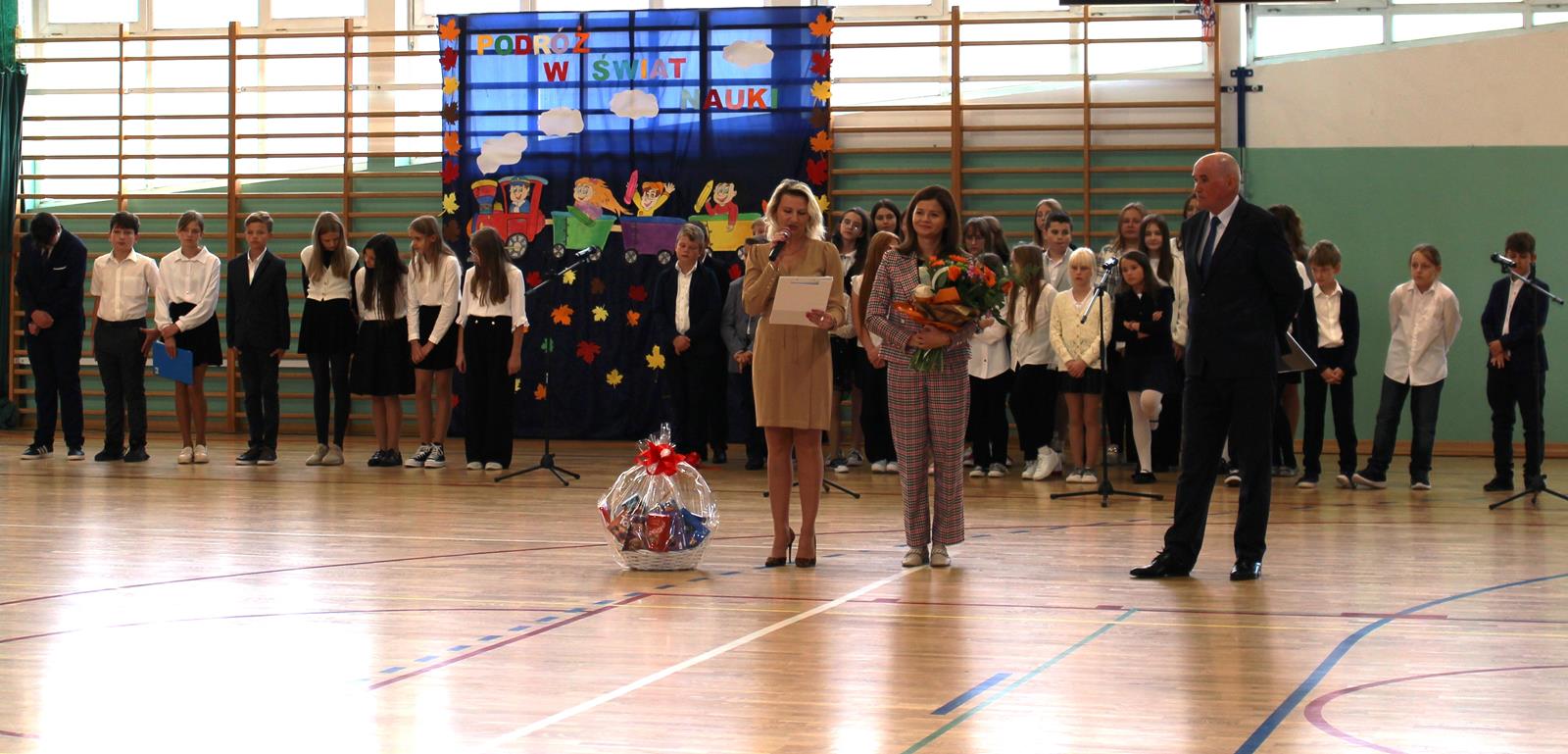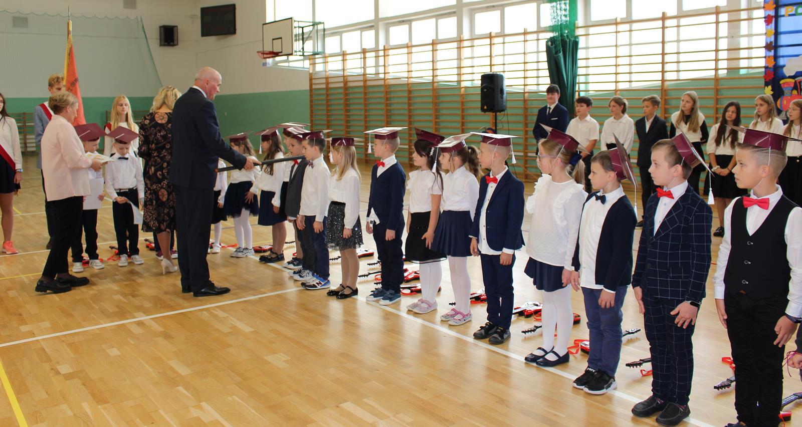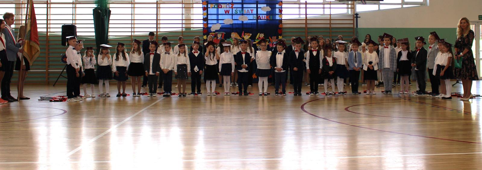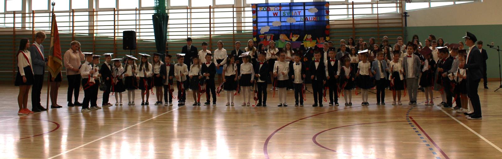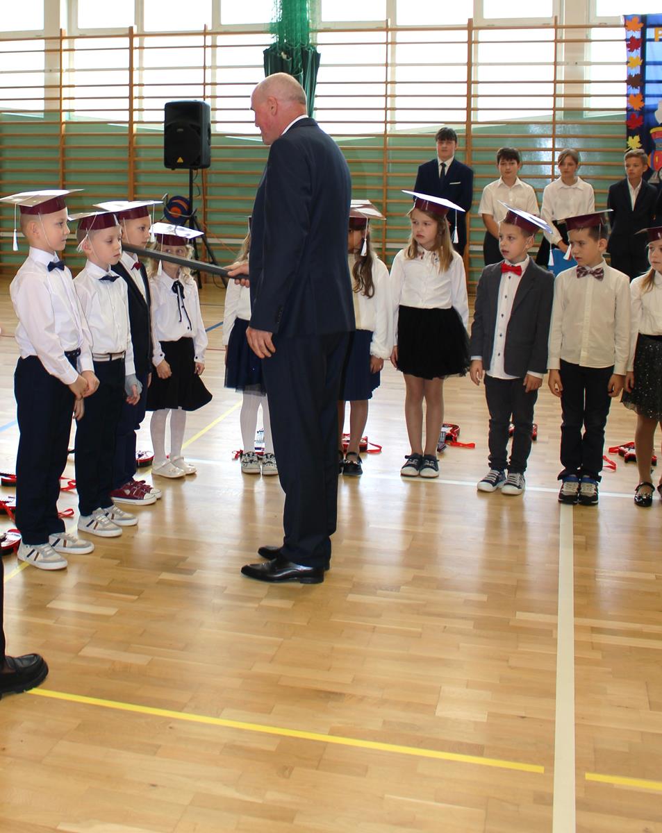 Tego dnia święto obchodzili również uczniowie klasy 1 SP. Rozpoczynając podróż w świat nauki zostali pasowani na ucznia szkoły podstawowej. W ten sposób pierwszoklasiści zostali oficjalnie włączeni do grona uczniów Szkoły Podstawowej w Goszczynie. Pierwszaki głośno i z przekonaniem przyrzekały być dobrymi i pilnymi uczniami oraz rzetelnie wypełniać swoje obowiązki, o czym przypominać im będą otrzymane pamiątkowe dyplomy.
