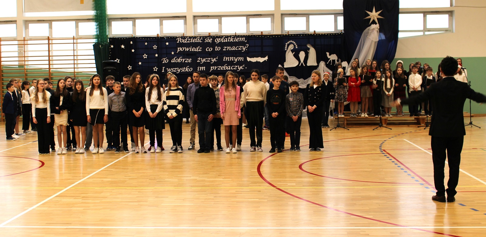 Zbliżające się Święta Bożego Narodzenia to czas wyczekiwany szczególnie przez dzieci. 18 grudnia w naszej szkole można było poczuć magię świąt za sprawą jasełek. Piękny występ uczniów klasy 5 pod opieką p. Anety Bąk wprowadził wszystkich w świąteczny nastrój. Zebranych przywitali uczniowie klasy 3a układem tanecznym do utworu „Mario, czy Ty wiesz…”. Inscenizacja przeplatana była kolędami i pastorałkami w wykonaniu chóru szkolnego pod batutą p. Dariusza Borkowskiego-Thieu, klas nauczania wczesnoszkolnego oraz klas 6a i 6b. Na koniec głos zabrał dyrektor szkoły p. Mariusz Wangryn, który podziękował młodym artystom i ich opiekunom za przygotowanie wyjątkowych jasełek oraz za wspaniałe wprowadzenie w atmosferę Świąt Bożego Narodzenia. Złożył także świąteczne życzenia uczniom, nauczycielom i pracownikom szkoły.