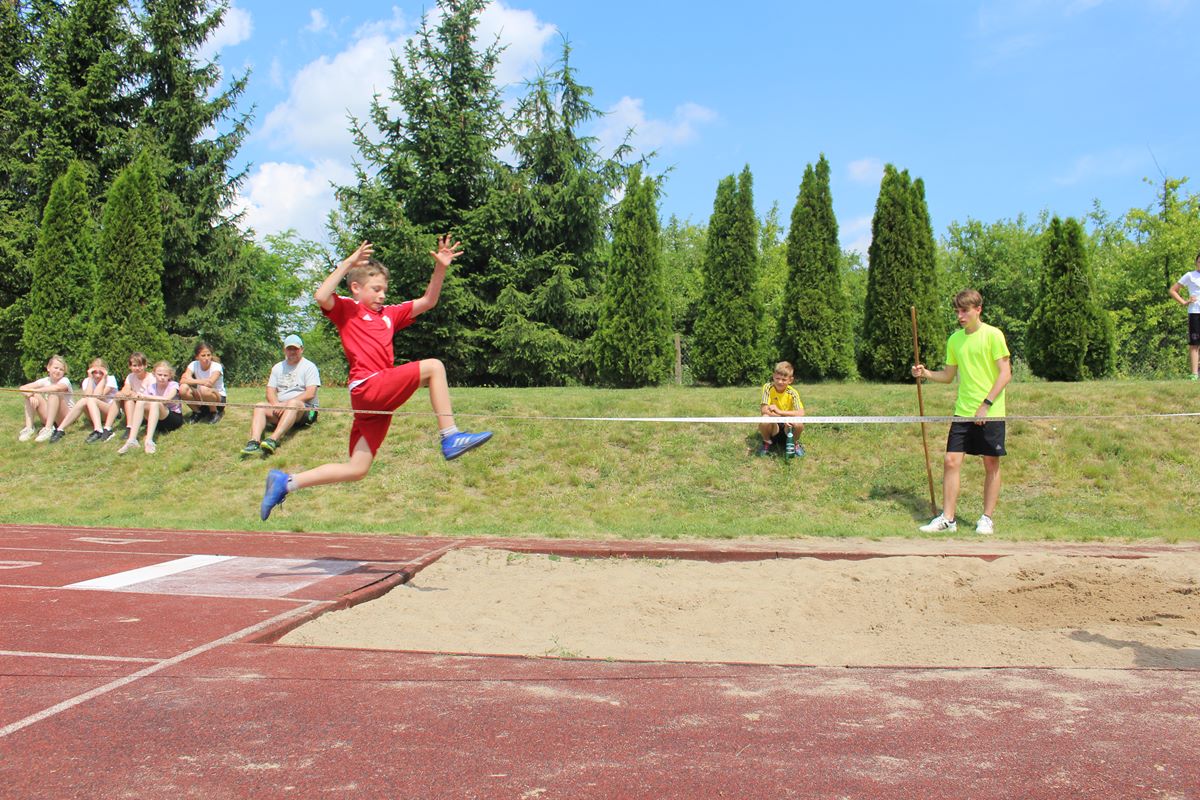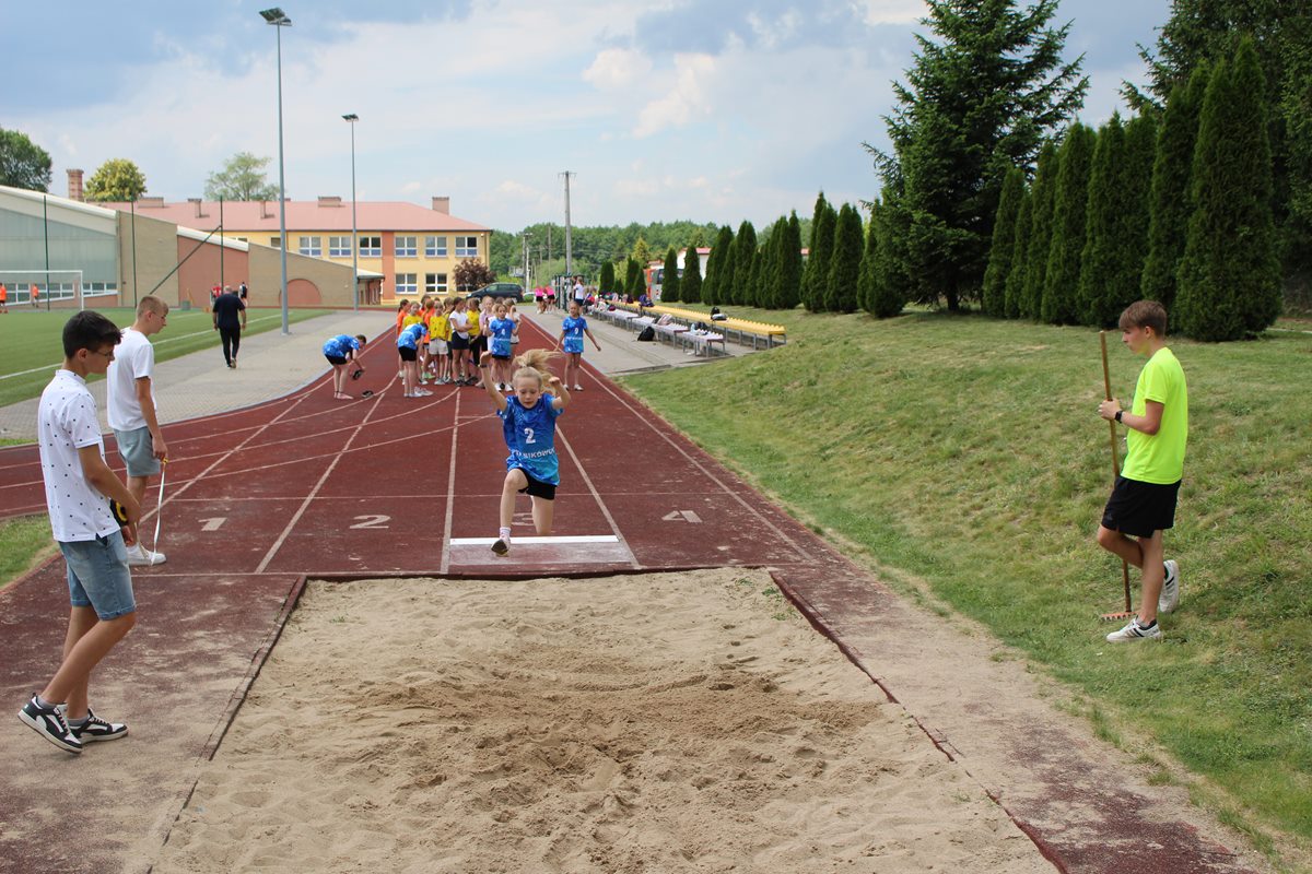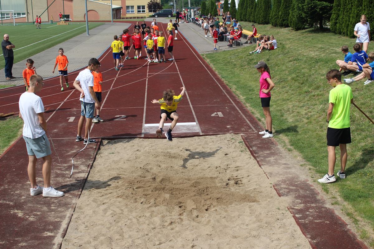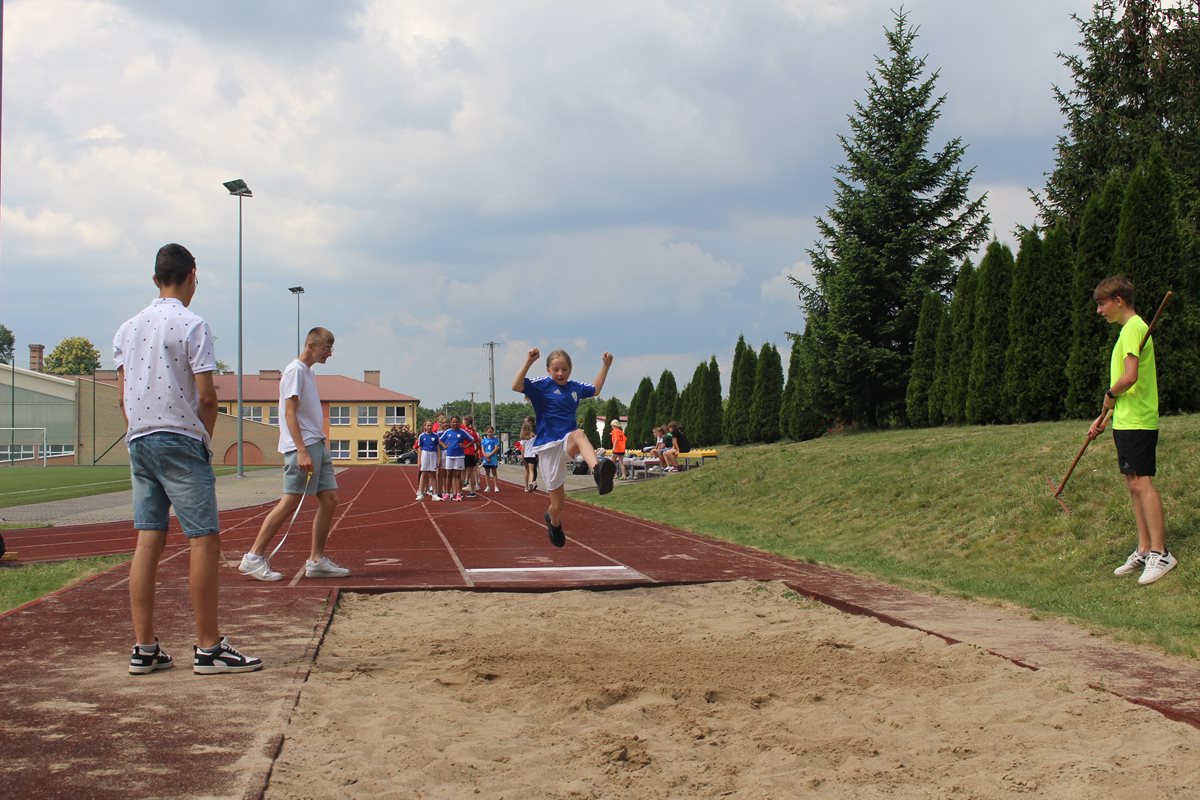 Ciekawa rywalizacja wywiązała się także podczas skoków w dal lecz po trzech seriach bezkonkurencyjni okazały się dziewczęta PSP Goszczyn Gabriela Orzechowska i Aleksander Białkowski.