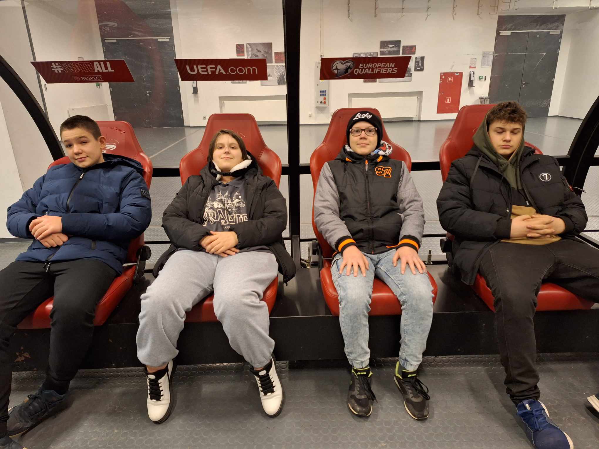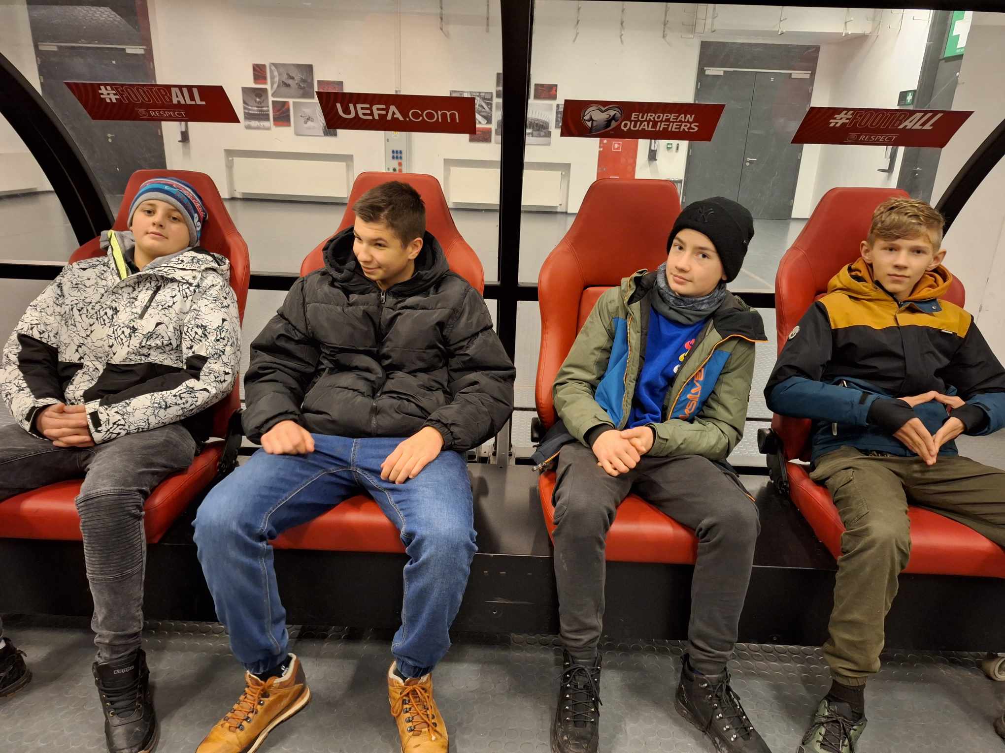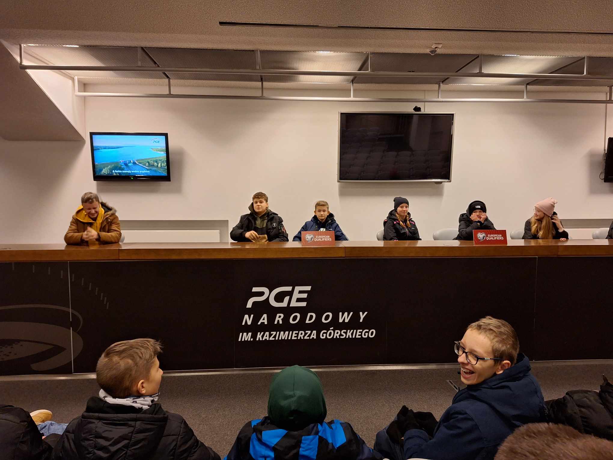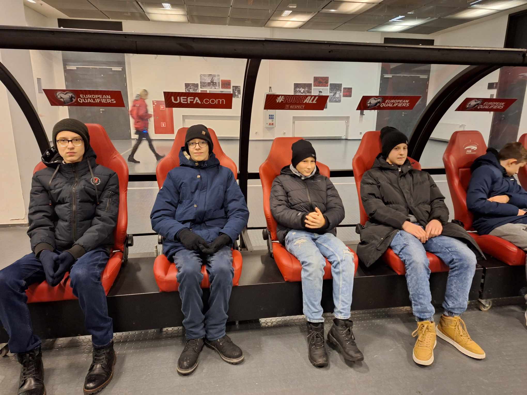Po „spotkaniu z van Goghiem” udaliśmy się na PGE Narodowy im. Kazimierza Górskiego. Zwiedziliśmy nie tylko arenę stadionu, ale także mieliśmy okazję obejrzeć loże VIP, szatnie oraz prysznice naszych sportowców. Uczniowie dowiedzieli się wielu ciekawych informacji, np. jak długo budowano stadion, jakie funkcje może pełnić płyta (na której tak naprawdę bardzo rzadko leży murawa), ile kosztowało wybudowanie stadionu czy dlaczego piłkarze biorą kąpiel w lodowatej wodzie z kostkami lodu.