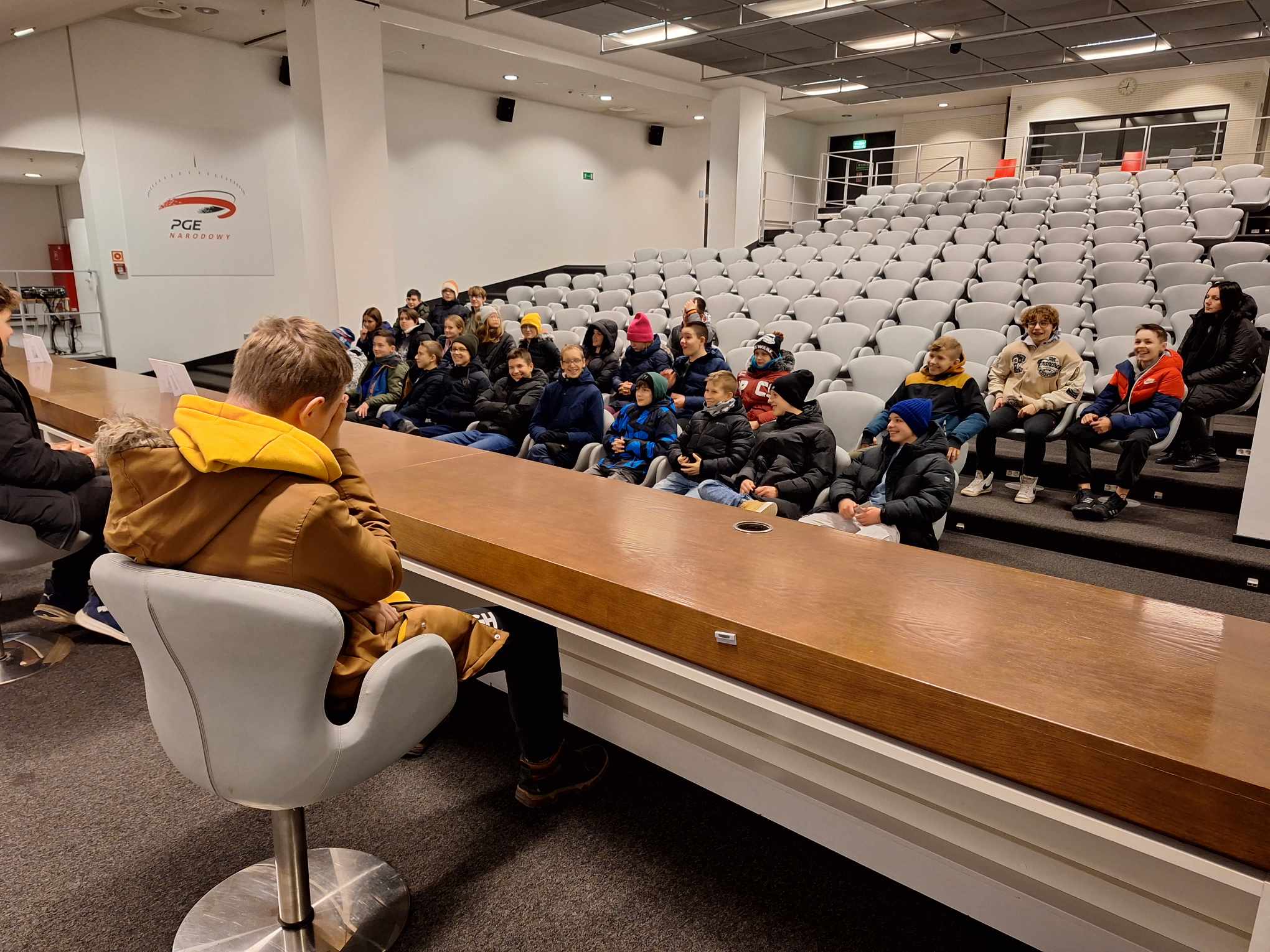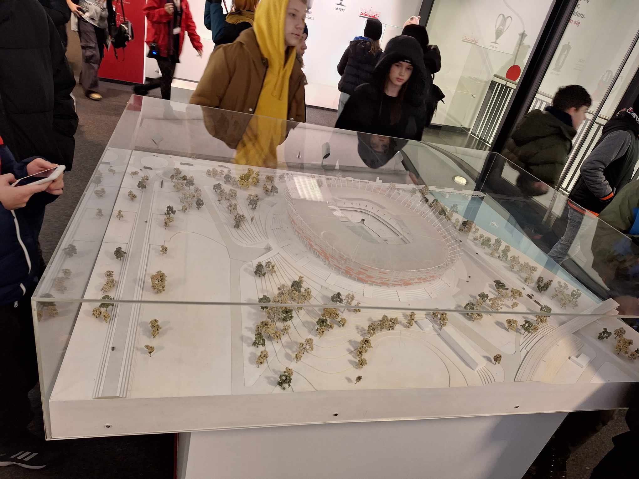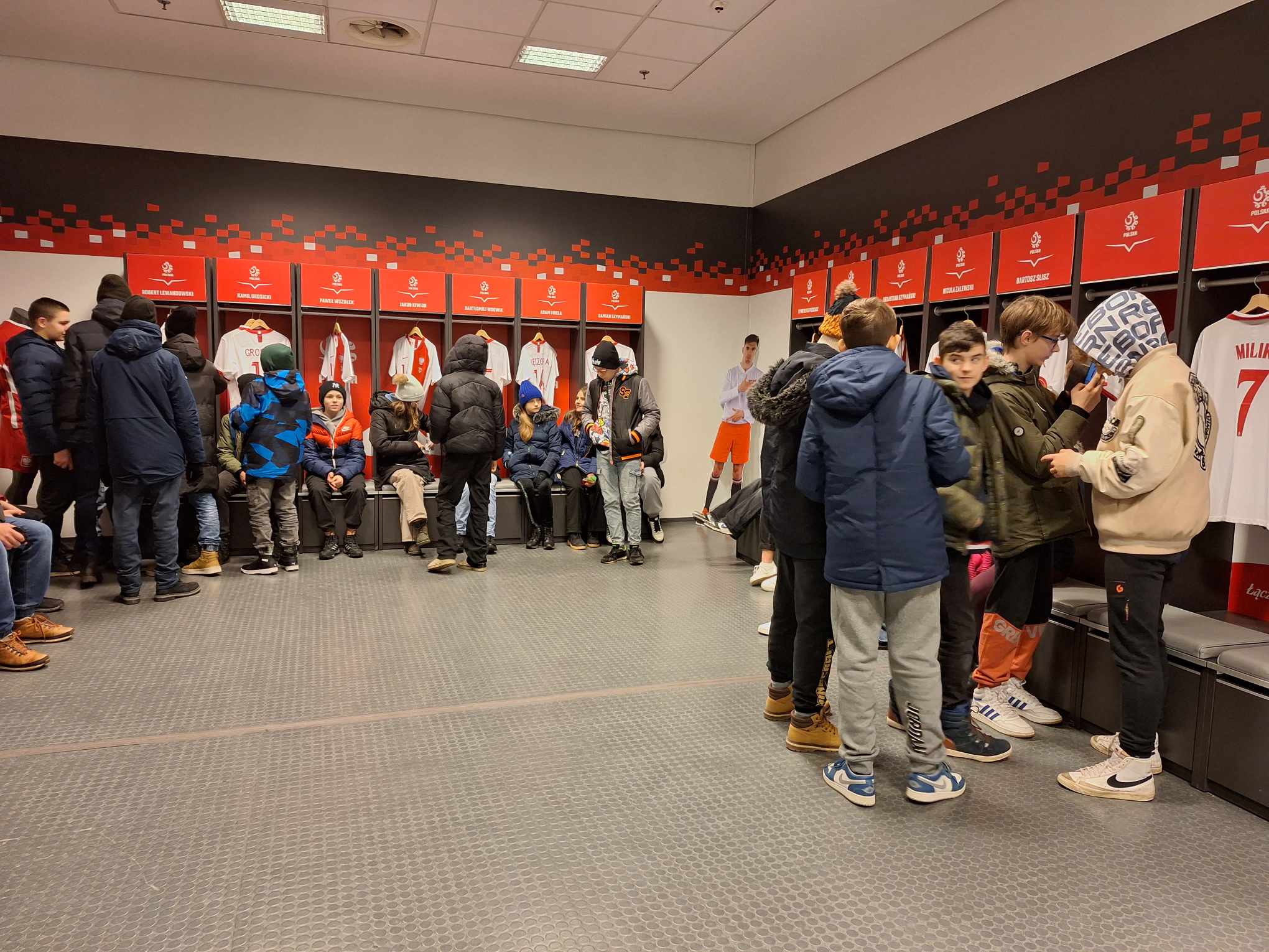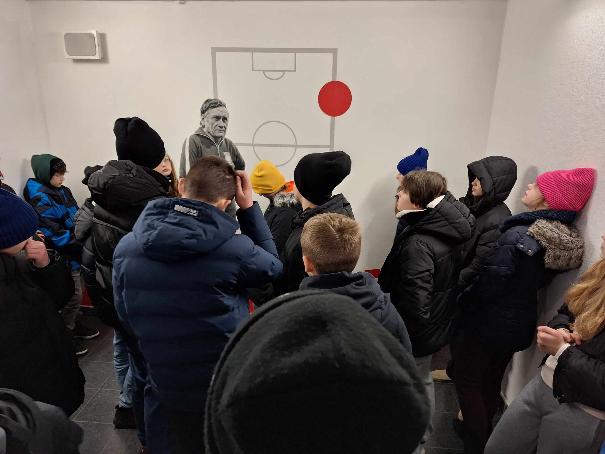 Po „spotkaniu z van Goghiem” udaliśmy się na PGE Narodowy im. Kazimierza Górskiego. Zwiedziliśmy nie tylko arenę stadionu, ale także mieliśmy okazję obejrzeć loże VIP, szatnie oraz prysznice naszych sportowców. Uczniowie dowiedzieli się wielu ciekawych informacji, np. jak długo budowano stadion, jakie funkcje może pełnić płyta (na której tak naprawdę bardzo rzadko leży murawa), ile kosztowało wybudowanie stadionu czy dlaczego piłkarze biorą kąpiel w lodowatej wodzie z kostkami lodu.