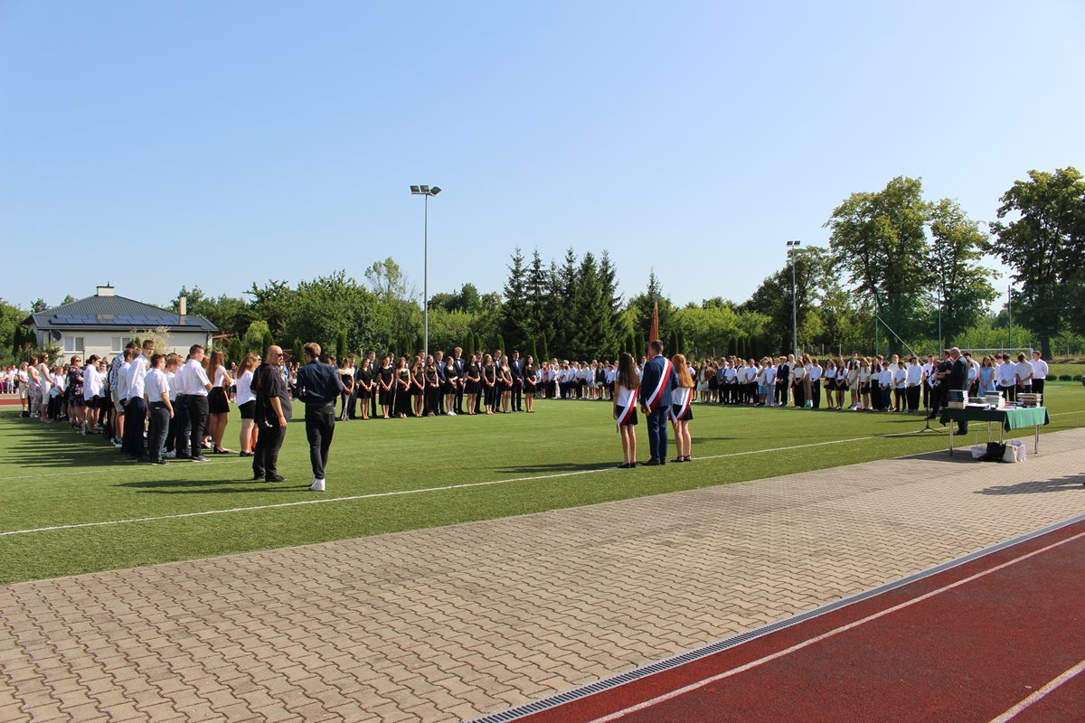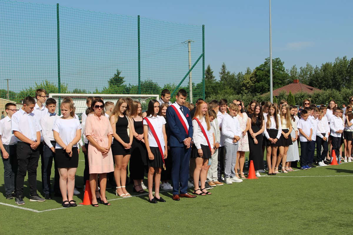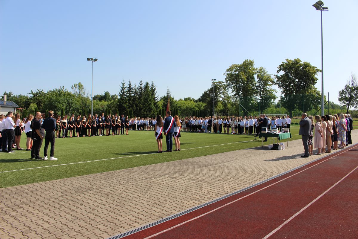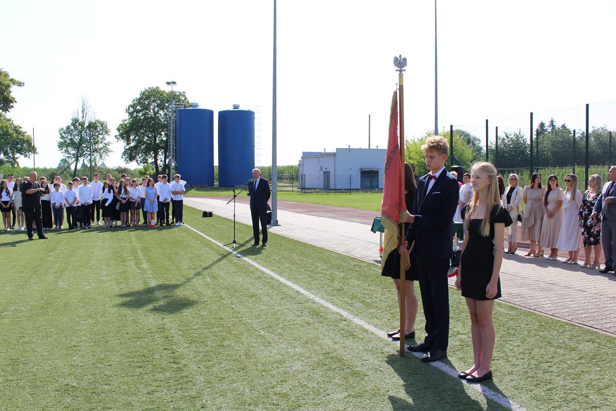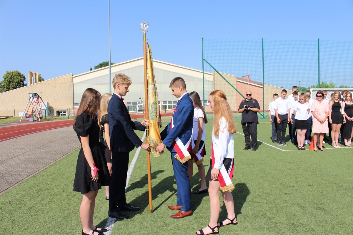 Czas szybko płynie – 21 czerwca w naszej szkole odbyło się uroczyste zakończenie roku szkolnego, uczniowie usłyszeli ostatni dzwonek kończący rok szkolny. Uroczystość rozpoczęła się odśpiewaniem hymnu polskiego, po czym nastąpiło przekazanie sztandaru szkoły przez obecny poczet sztandarowy składający się z uczniów klas ósmych w składzie w składzie: chorąży - Miłosz Mieńkowski, asysta - Klaudia Duraj, Maja Soborzyńska nowemu w składzie: chorąży - Kępka Łukasz, asysta - Zuzanna Kaczmarek, Karolina Wudarczyk.