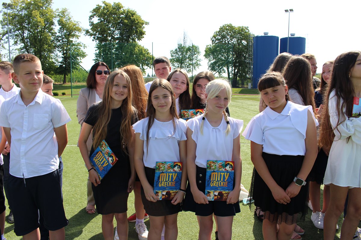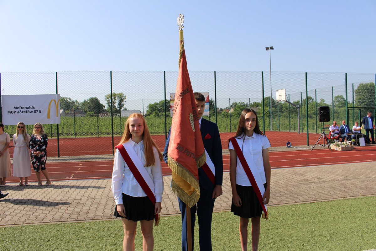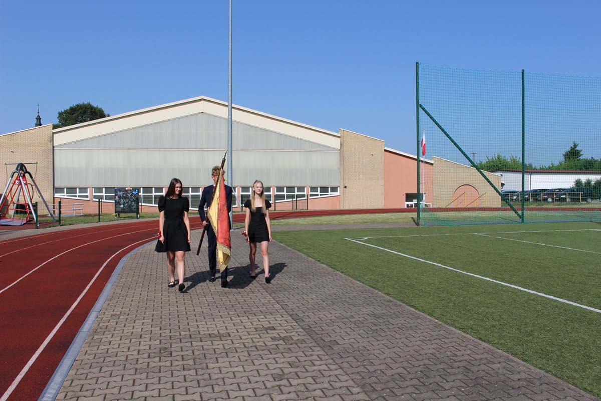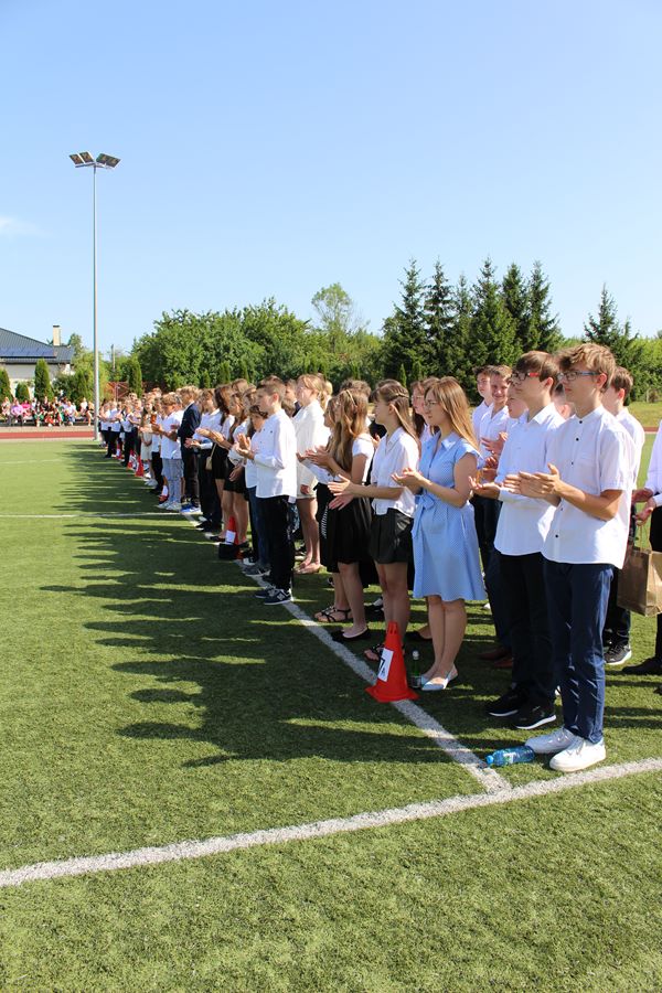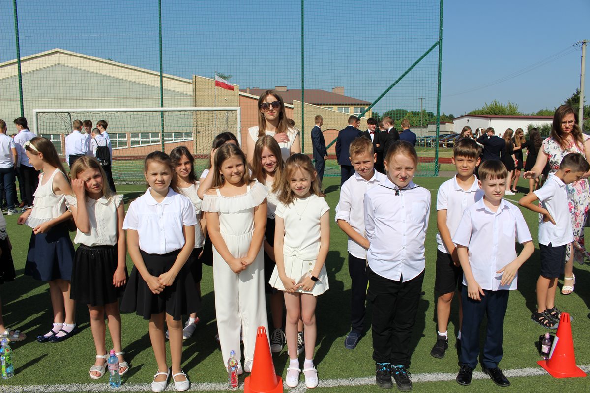 Czas szybko płynie – 21 czerwca w naszej szkole odbyło się uroczyste zakończenie roku szkolnego, uczniowie usłyszeli ostatni dzwonek kończący rok szkolny. Uroczystość rozpoczęła się odśpiewaniem hymnu polskiego, po czym nastąpiło przekazanie sztandaru szkoły przez obecny poczet sztandarowy składający się z uczniów klas ósmych w składzie w składzie: chorąży - Miłosz Mieńkowski, asysta - Klaudia Duraj, Maja Soborzyńska nowemu w składzie: chorąży - Kępka Łukasz, asysta - Zuzanna Kaczmarek, Karolina Wudarczyk.