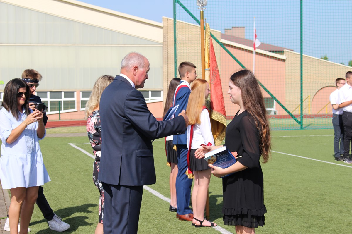 W dalszej części uroczystości pan dyrektor Mariusz Wangryn  podziękował uczniom, rodzicom oraz pracownikom szkoły za całoroczną pracę. Życzył wszystkim udanych i bezpiecznych wakacji. Nie zabrakło również gratulacji dla naszych absolwentów z życzeniami sukcesów w dalszej edukacji.