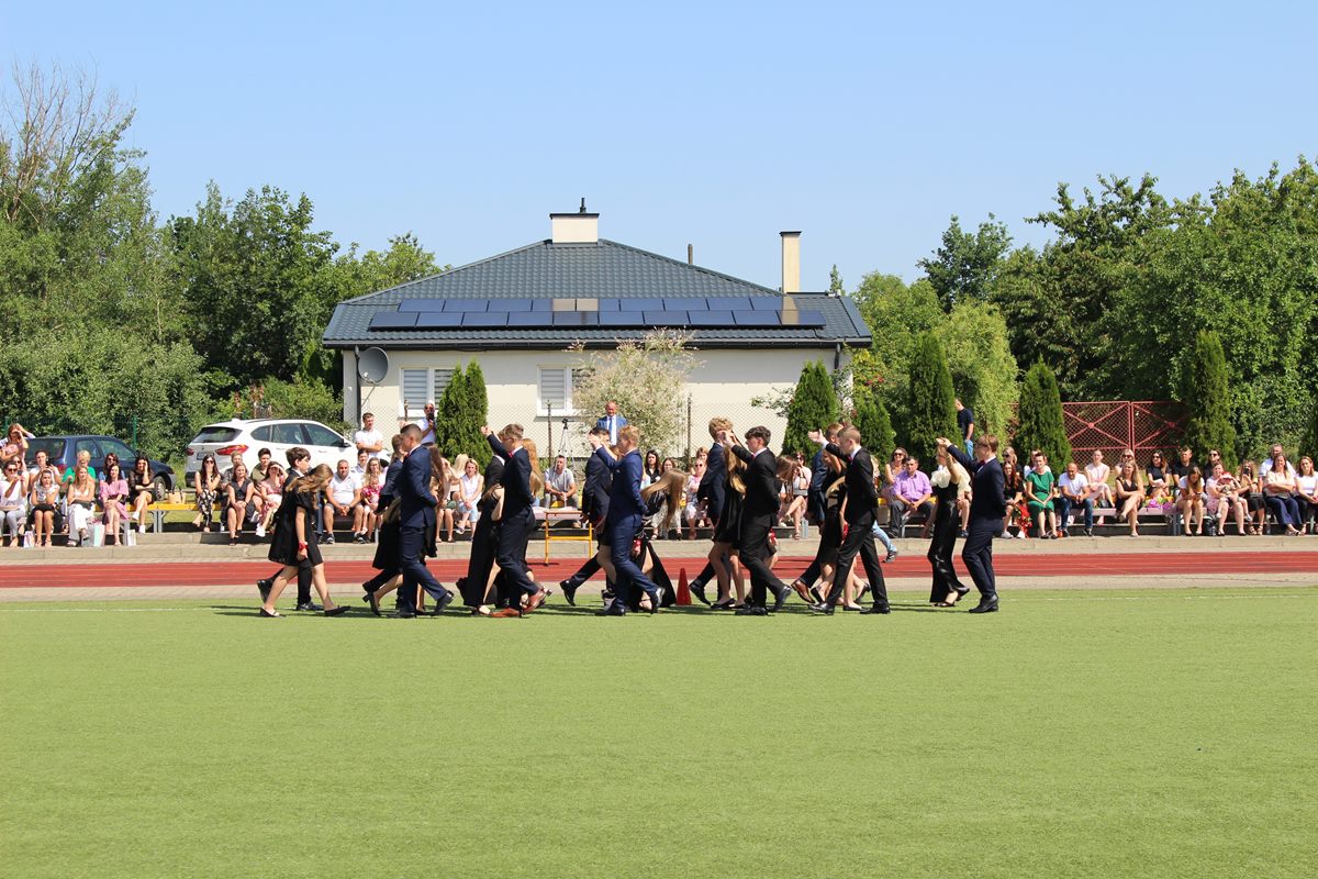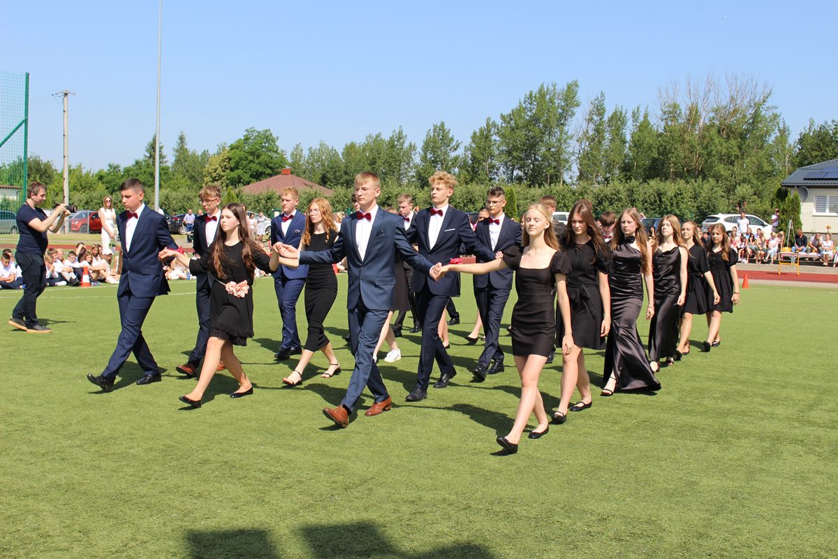 Uczniowie klasy ósmej w pięknych słowach pożegnali grono nauczycielskie, śpiewem oraz pięknie wykonanym polonezem pożegnali się z naszą szkołą.